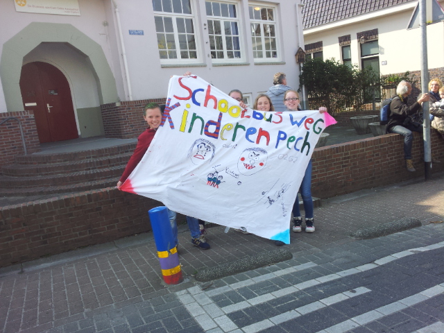 Ouders en leerlingen van basisschool De Driebond hebben vrijdagmiddag in Engelbert geprotesteerd tegen het verdwijnen van de pendelbus tussen de bovenbouw in Engelbert en de onderbouw in Ruischerbrug.