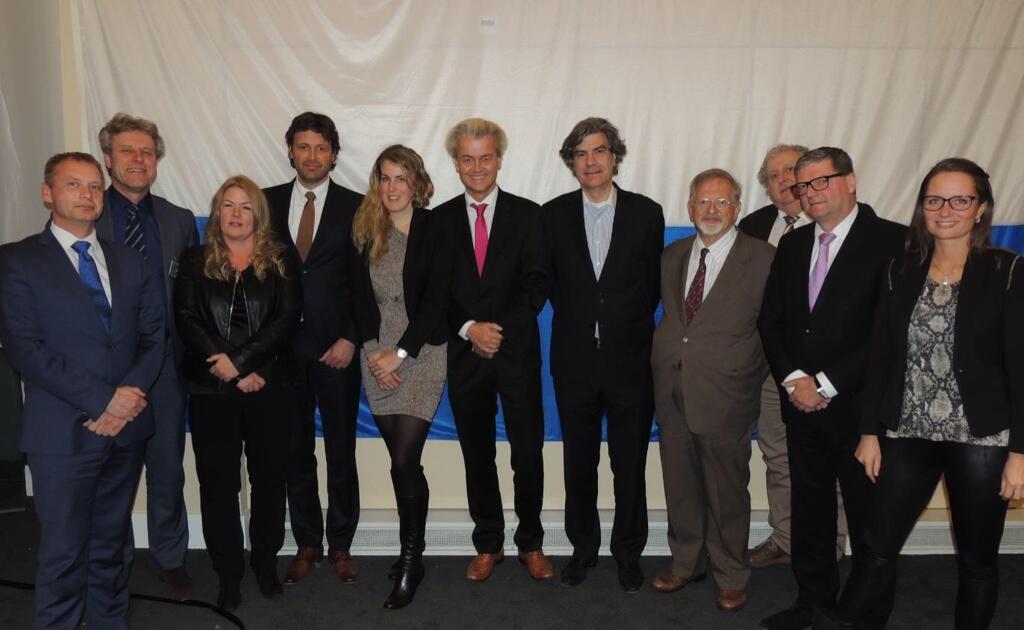 De PVV kandidaten voor Europa. In het midden Geert Wilders. Tweede van links: Ton van Kesteren.