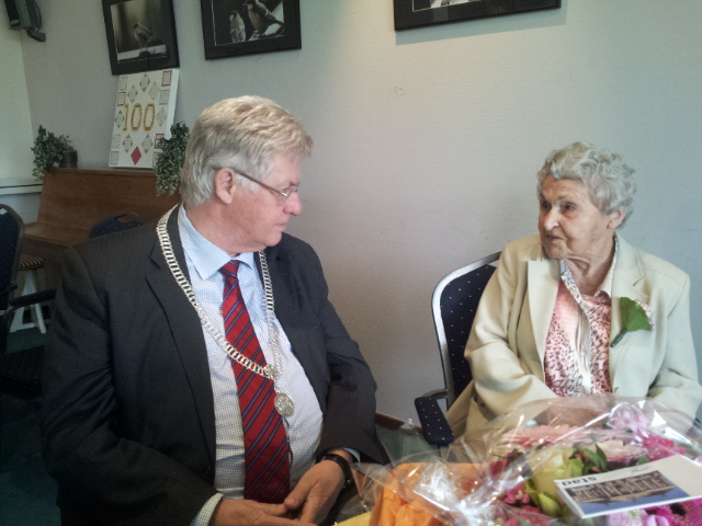 Burgemeester Vreeman brengt maandagmiddag een bezoek aan mevrouw Veltens-Vos. Zij viert haar honderdste verjaardag.