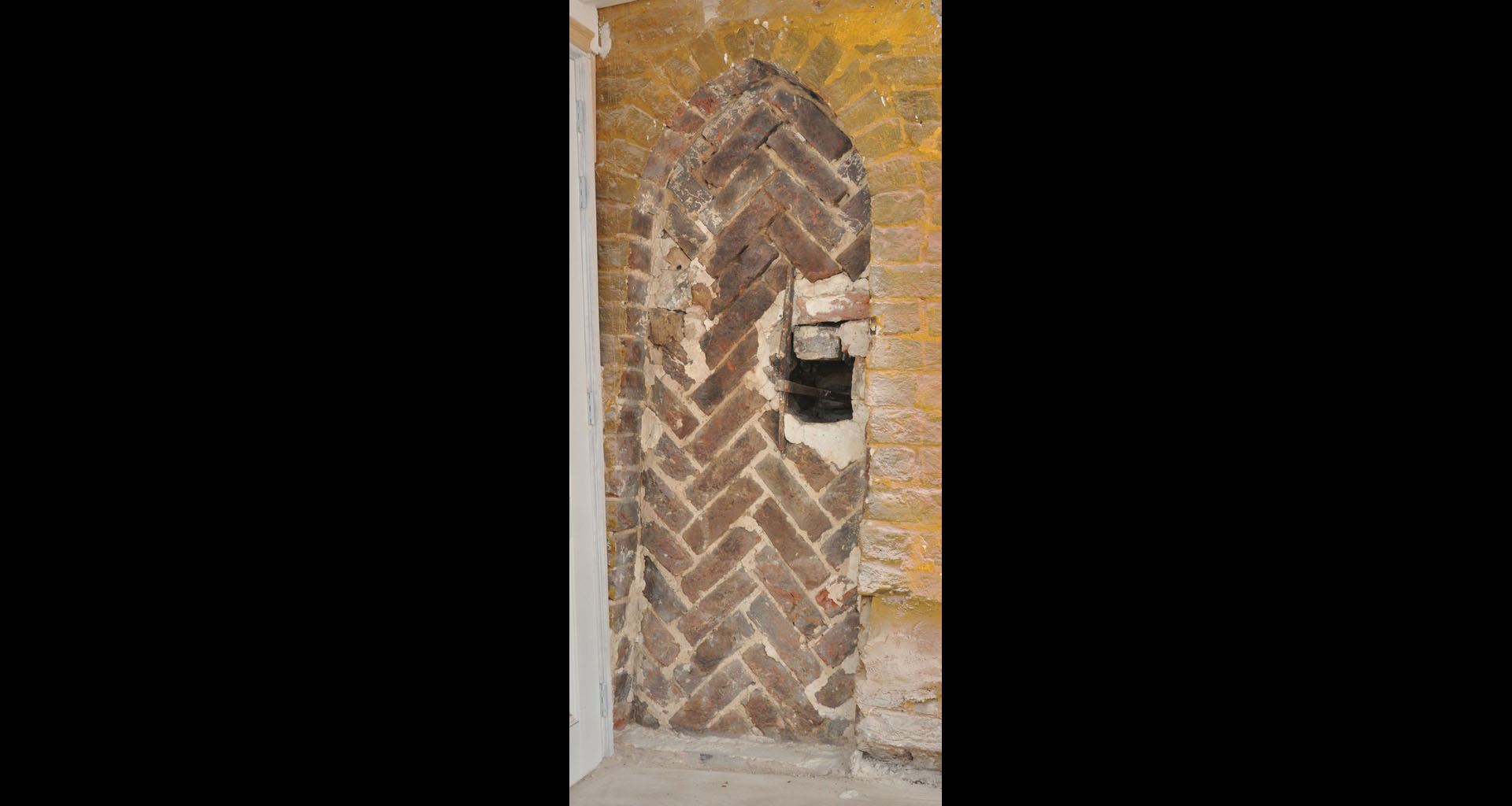 Tijdens de verbouwing is één van de nissen opengemaakt; die blijft voortaan zichtbaar.