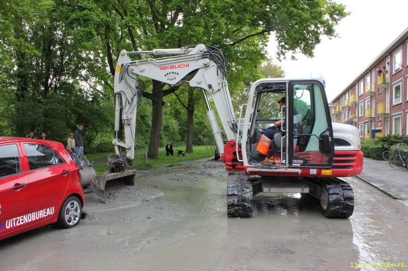 Het is nog niet precies bekend hoe de breuk in de waterleiding aan de Van Oldebarneveltlaan in de Selwerderwijk is ontstaan.