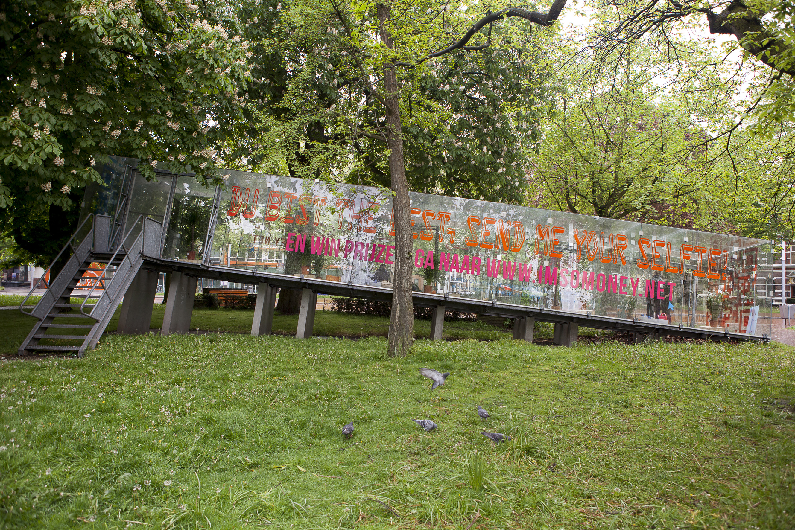 Deelnemers bepalen zelf de waarde van het biljet en dus van hun eigen hoofd. De bankbiljetten worden bewaard en waaien soms in het paviljoen rond. Tijdens De Nacht van Kunst & Wetenschap op 24 mei kun mensen proberen een van de winnende bankbiljetten te vangen. Daarmee winnen ze een ‘bankbiljet’ ter waarde van 350 euro. Deelname kan van 3 mei t/m 24 mei via de website www.imsomoney.net.