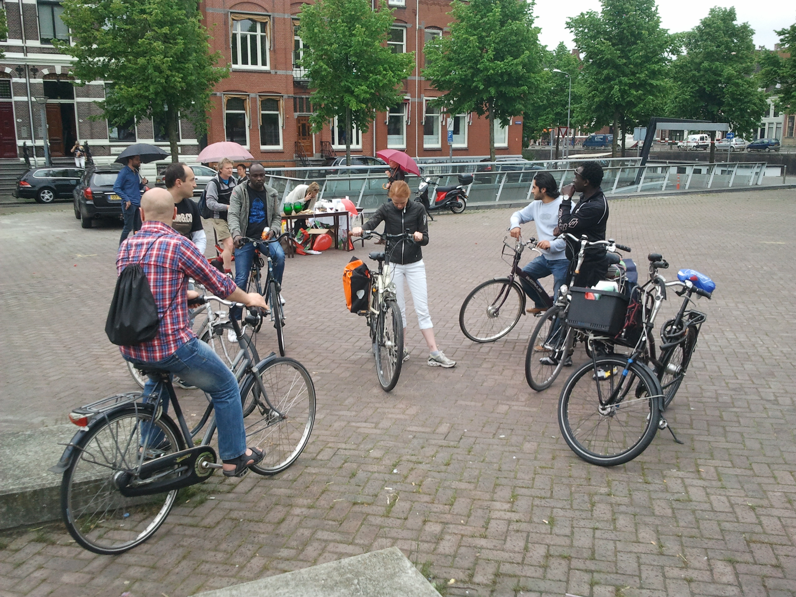 De fietsers, vrijwilligers en vluchtelingen, gaan vanaf de binnenstad naar Haren, dan richting Zuidhorn en weer terug naar de stad.