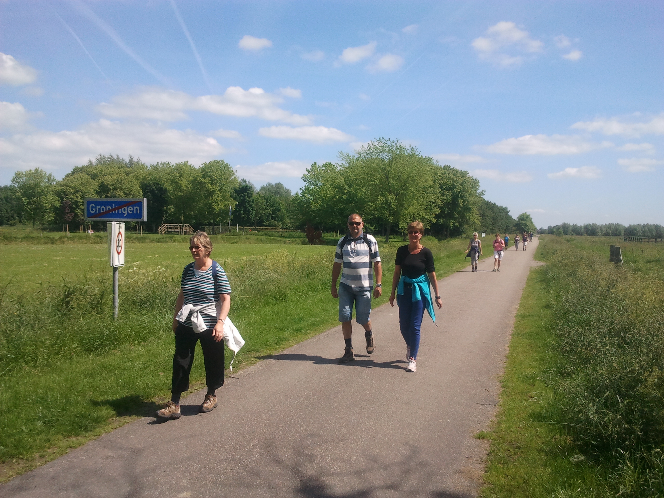 De wandelaars kwamen tijdens de laatste etappe richting de stad langs de wijk Lewenborg. Daar konden ze door het le Roy natuurgebied wandelen. Gidsen uit de wijk stonden klaar om uitleg te geven.