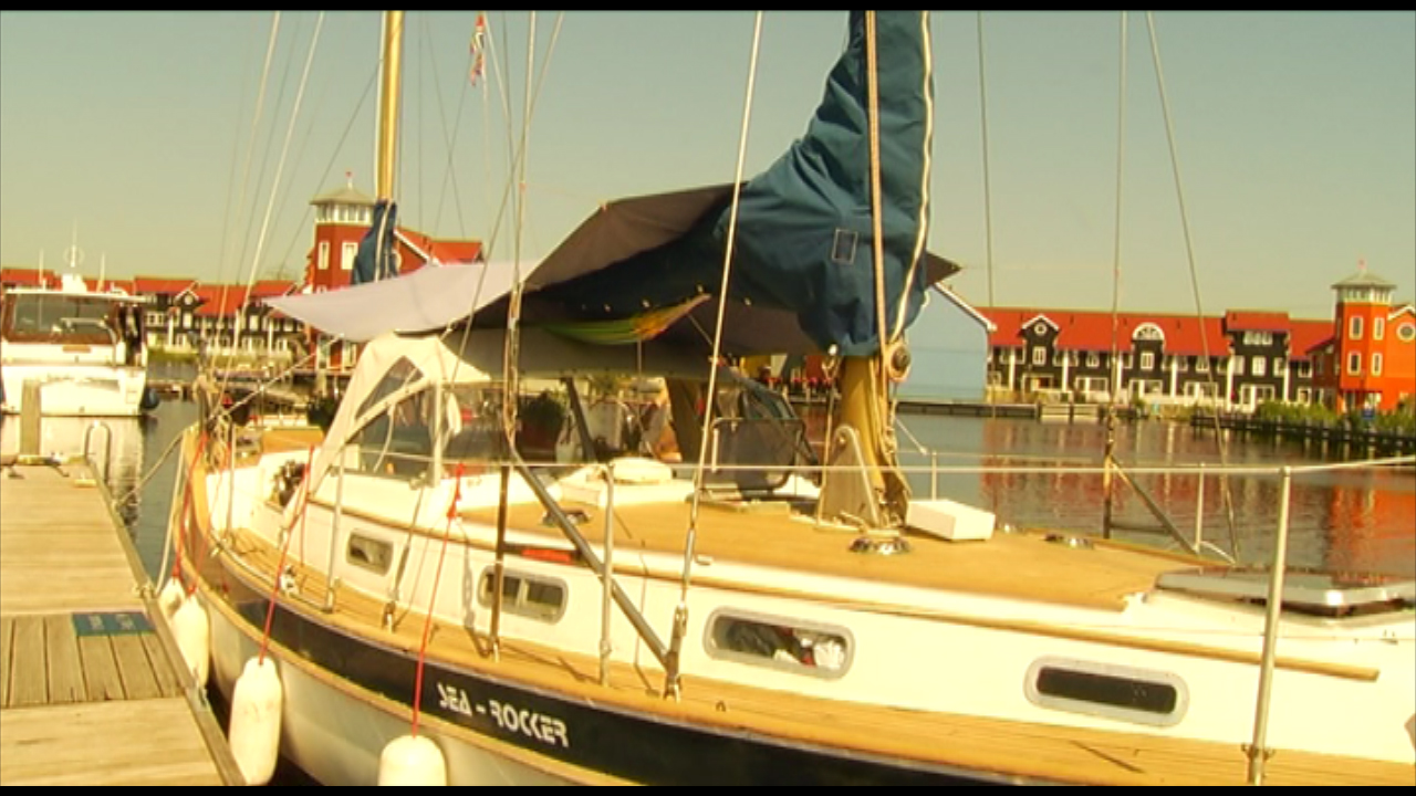 In de Reitdiep haven ligt de Trintella waarmee de studenten Niels Tammeling en Tjerk Zweers in 2017 een duurzame trip rond de wereld gaan maken.