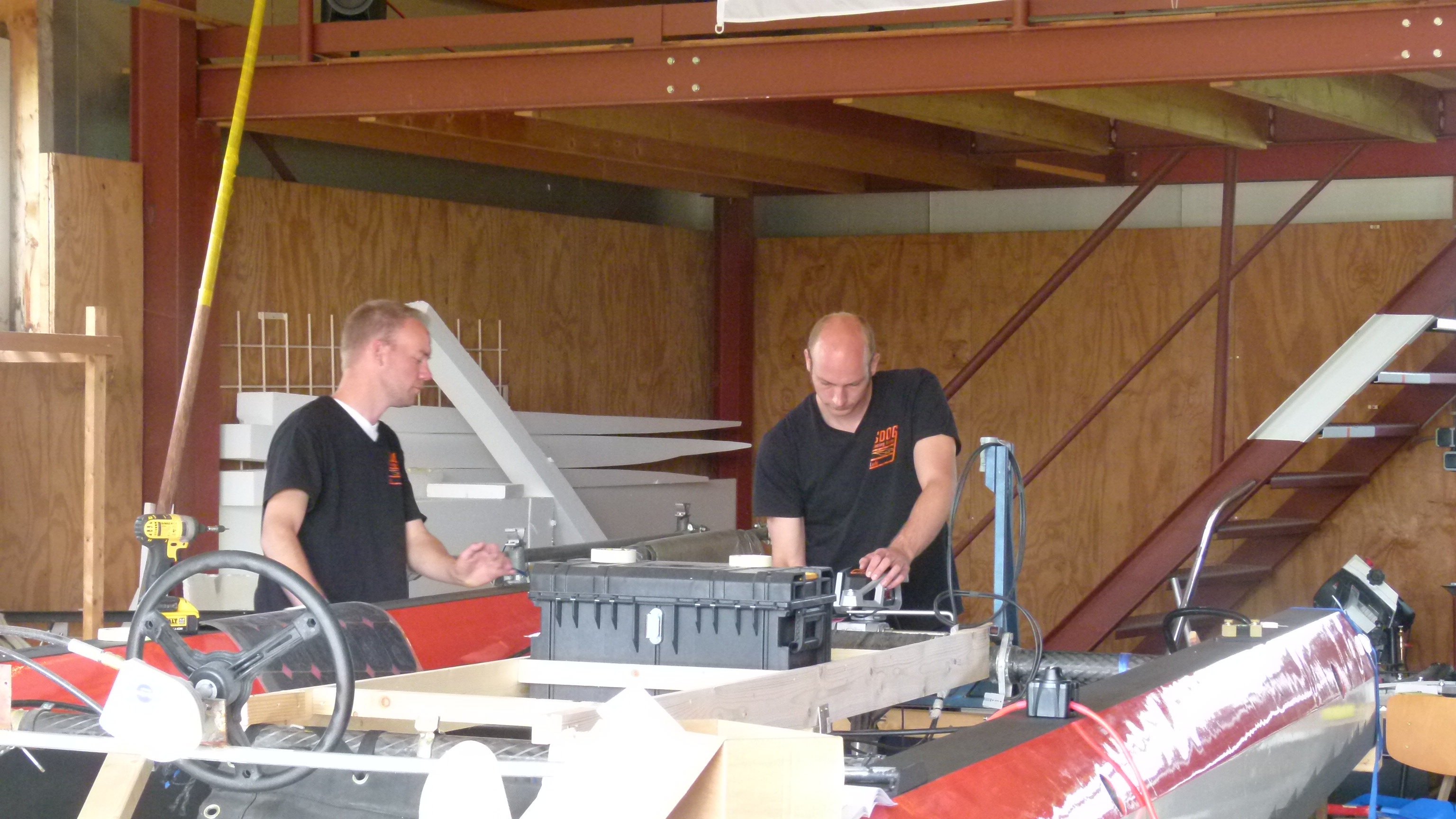Het enige wat rest van de duurzame boot is de aandrijving. “Twee jaar lang hebben we hier heel wat avond- en weekenduren ingestoken. Alles is voor niets geweest. De Energy Solar Challenge was de eerste proefmeting geweest. Nu kunnen we alleen maar zeggen dat we nooit zullen weten wat onze boot in zijn mars had.”
