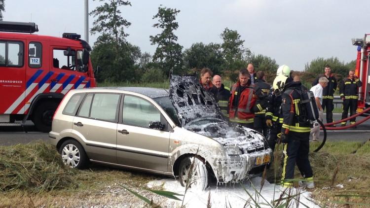 De bestuurder van de auto reed de sloot in toen hij de brand opmerkte om de brand te blussen. Dat lukte gedeeltelijk, de brandweer kon de klus afmaken. De bestuurder is niet gewond, maar de auto heeft flinke schade opgelopen.