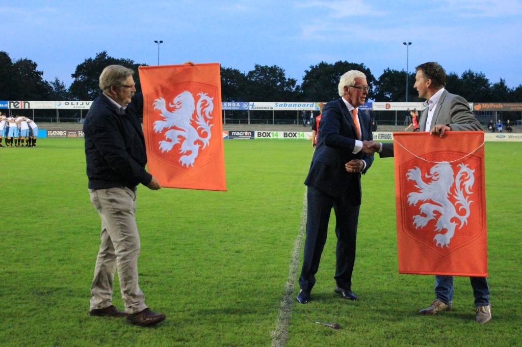 De meest gespeelde wedstrijd in Nederland is die tussen Be Quick en Achilles. Dat was voor de 125 jarige KNVB reden om cadeaus te geven. KNVB noord voorzitter Jan van Driel deelde twee vlaggen uit aan de voorzitters van de twee stokoude, maar ook springlevende verenigingen. (foto).