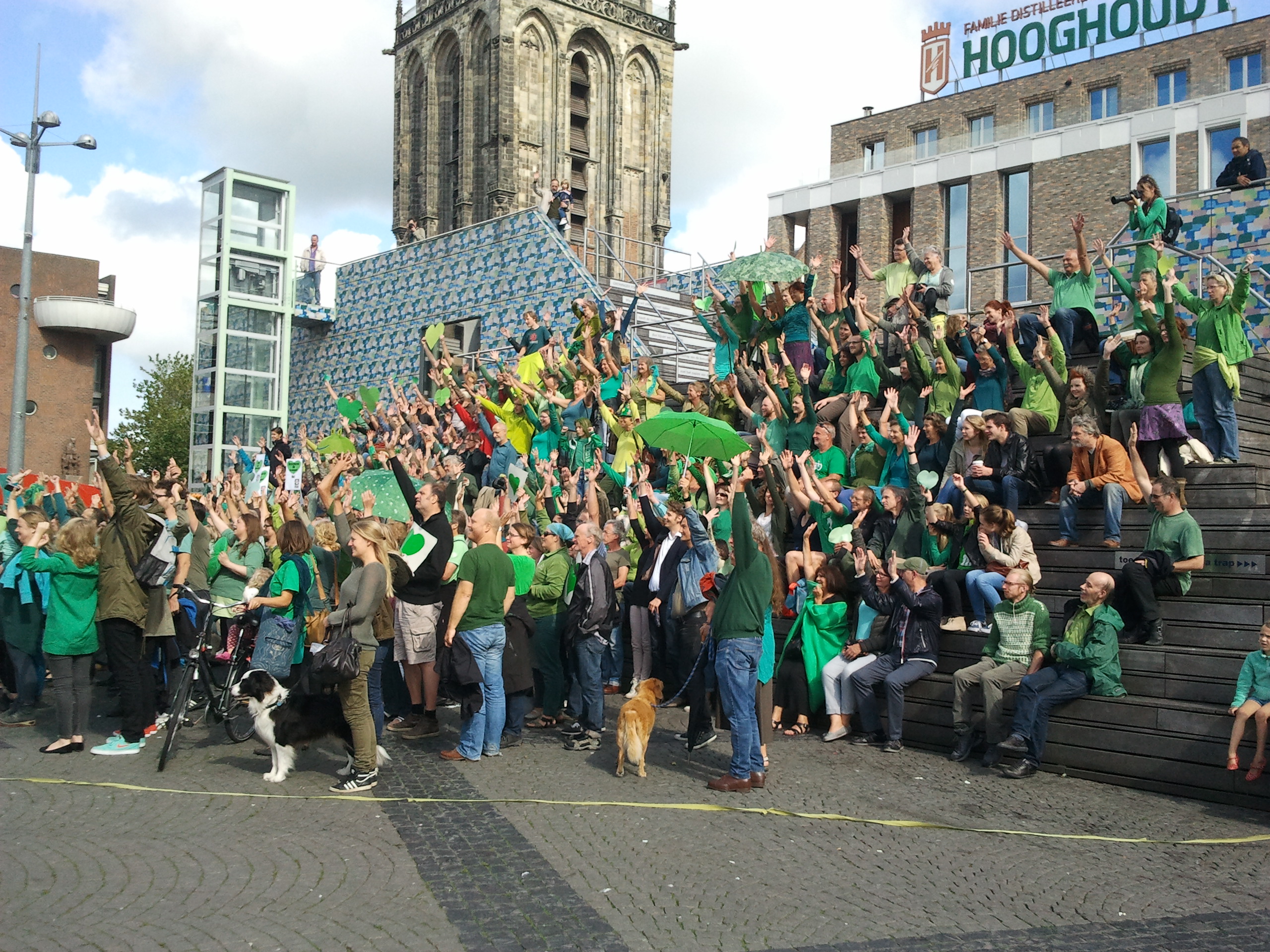 Rond de driehonderd in groen geklede mensen vormden gezamenlijk een groot groen hart. Van deze samenkomst werd een film gemaakt. De film wordt overmorgen vertoond aan wereldleiders die samenkomen op de klimaattop in New York.