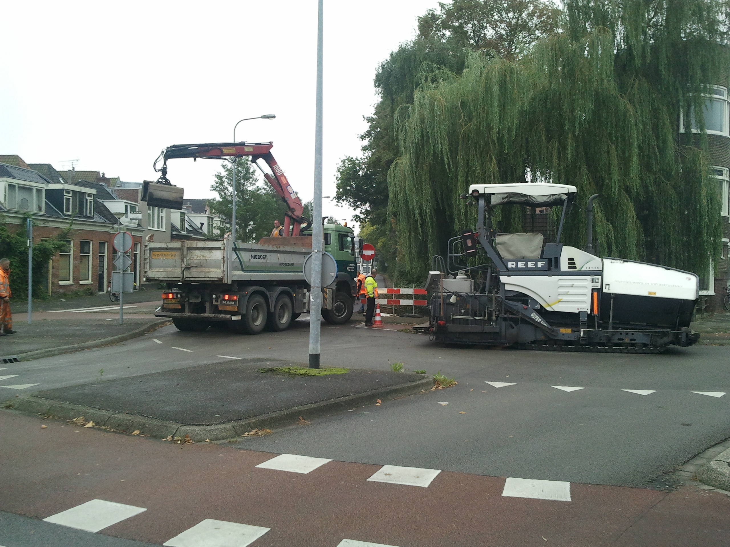 Voor het doorgaande verkeer richting de Bedumerweg is een omleidingsroute via de Korreweg aangegeven.