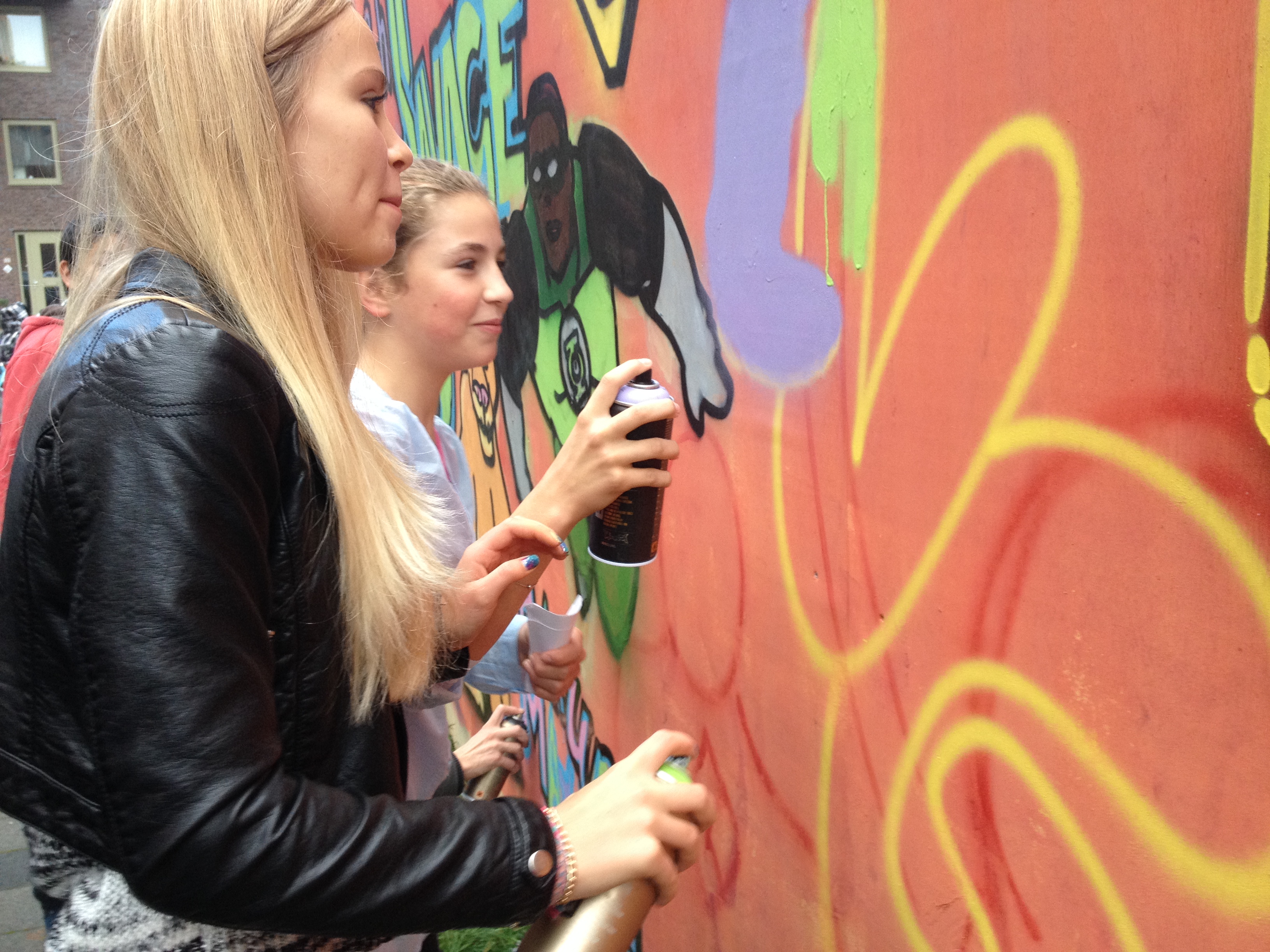 Maak een schets van je eigen superheld. Dat was de opdracht die klas 2A van het Leon van Gelder enkele weken geleden kreeg. Dinsdag mochten zij hun creatie met graffiti op een schutting spuiten.