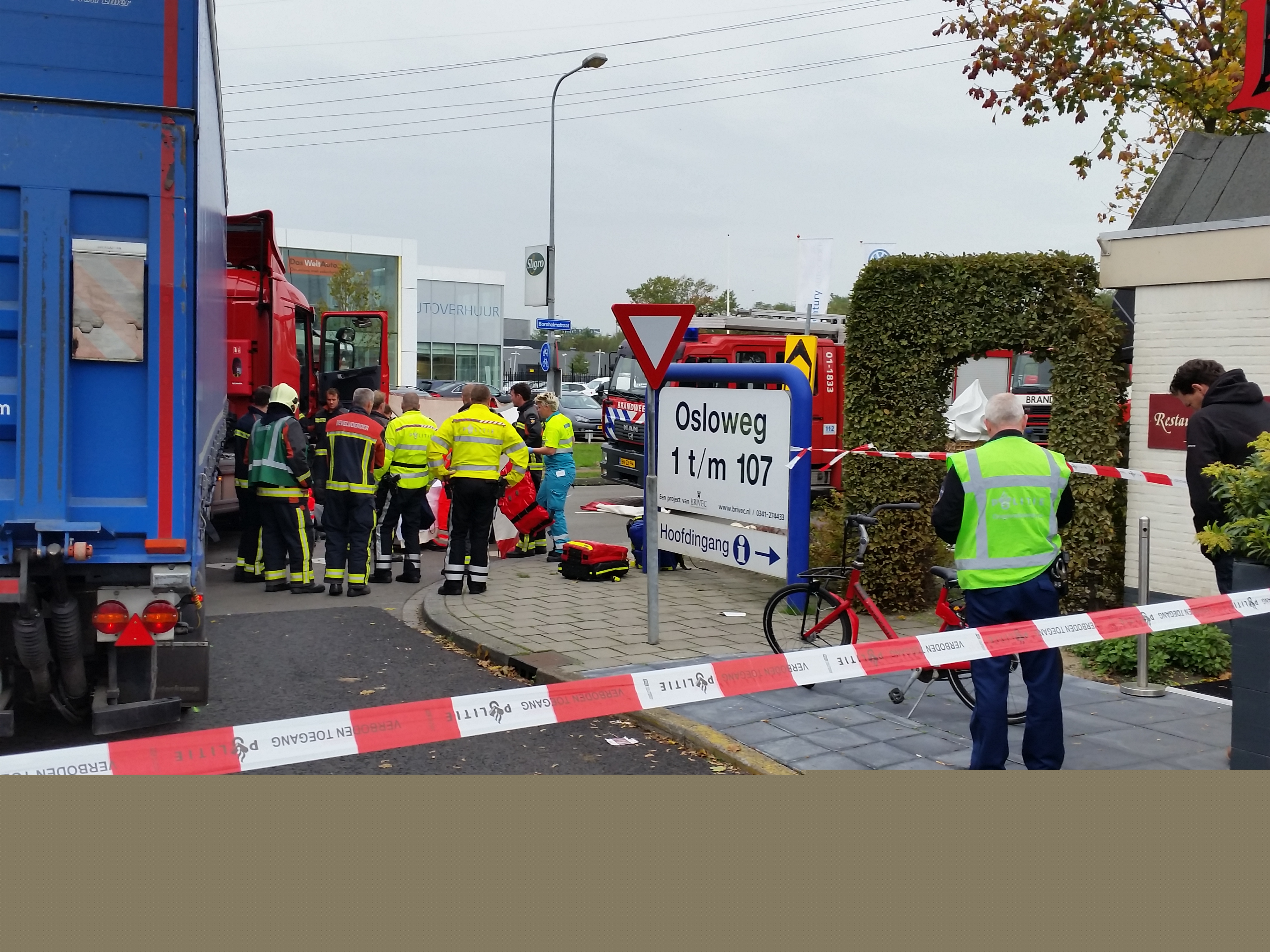 Het gaat om een vrouw die bekneld is geraakt onder de vrachtwagen. Zij is inmiddels bevrijd door de hulpdiensten en naar het ziekenhuis gebracht.