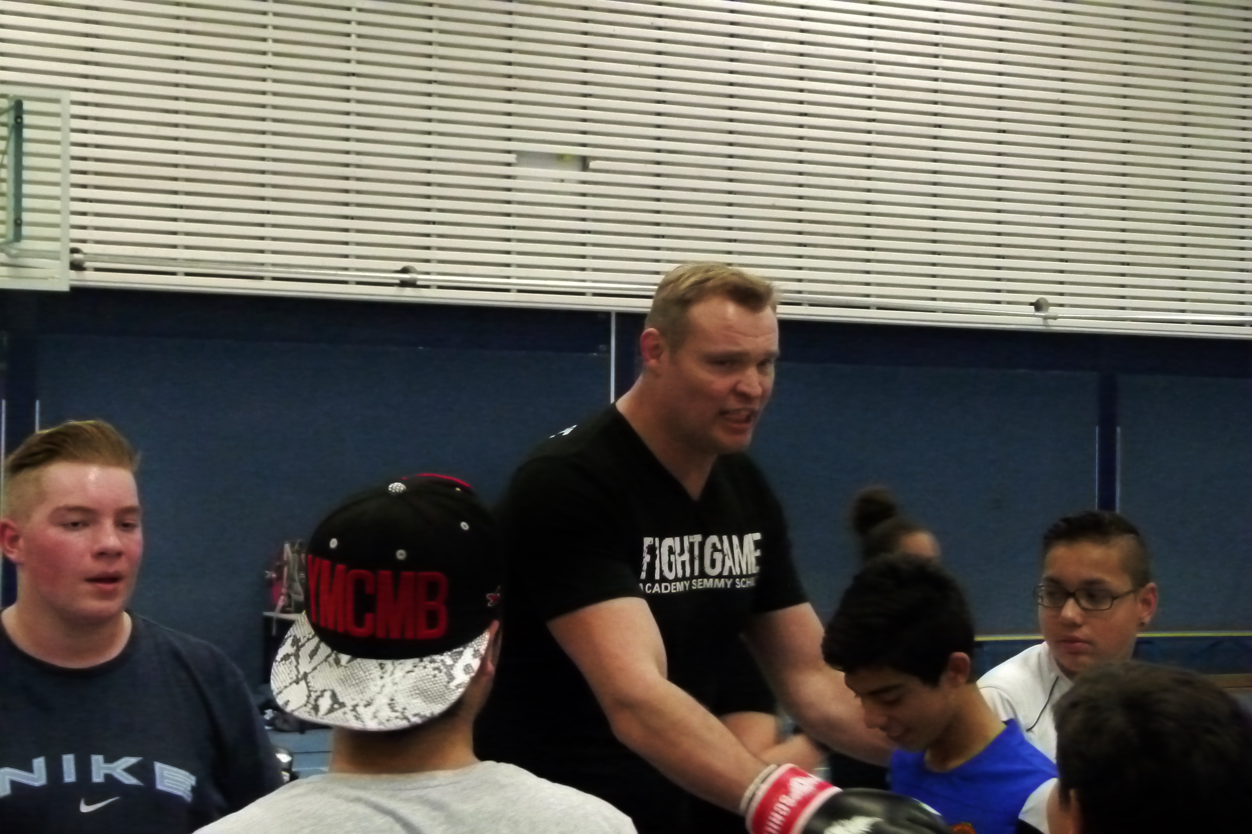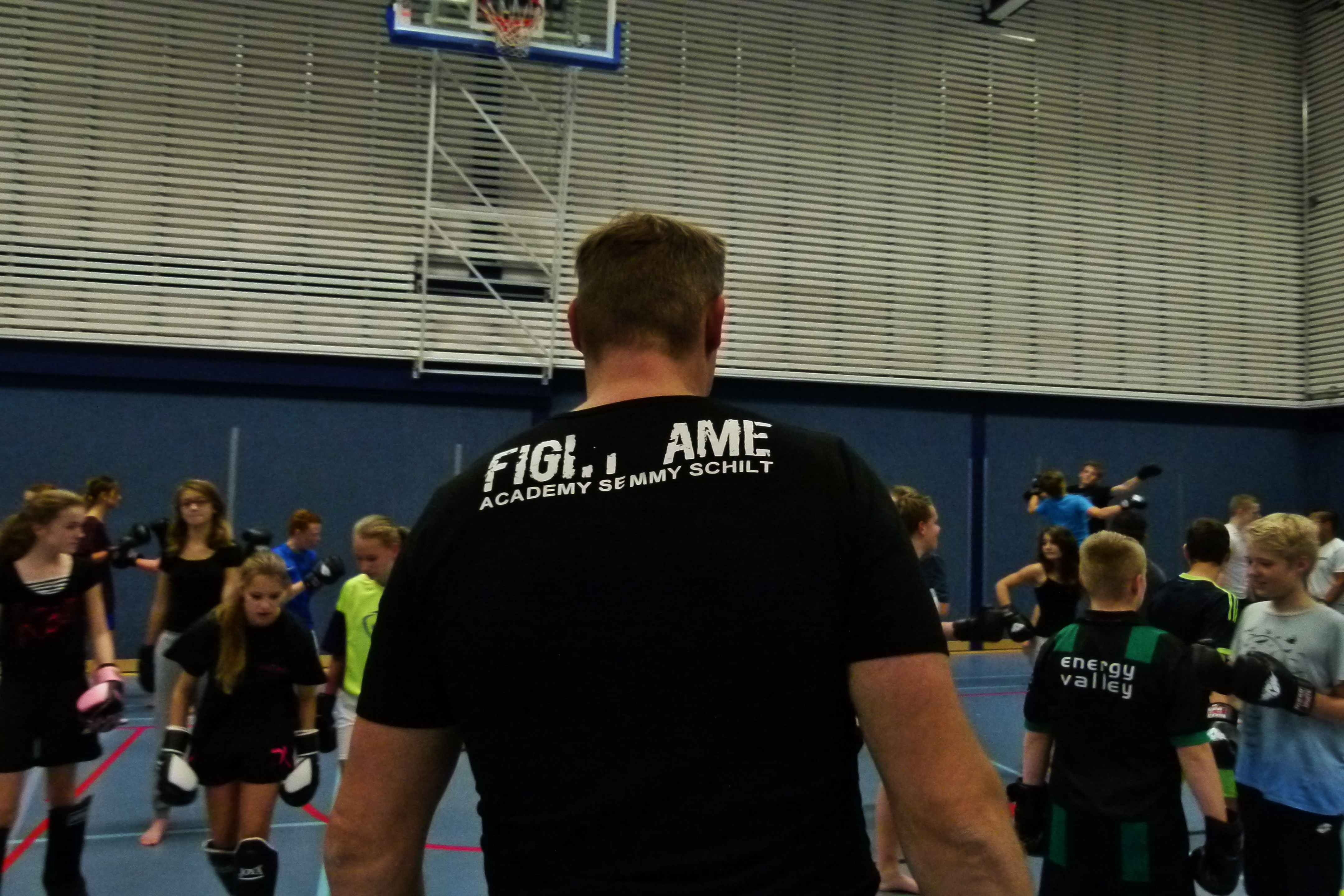 De Supersized Semurai, Hightower, The Dutch Destroyer, viervoudig wereldkampioen kickboksen Semmy Schilt heeft gisteren les gegeven aan middelbare scholieren op het Leon van Gelder, Reitdiep College. De vriendelijke reus heeft de leerlingen een basistraining gegeven zodat ze van zich af kunnen bijten tegen bijvoorbeeld pesters.