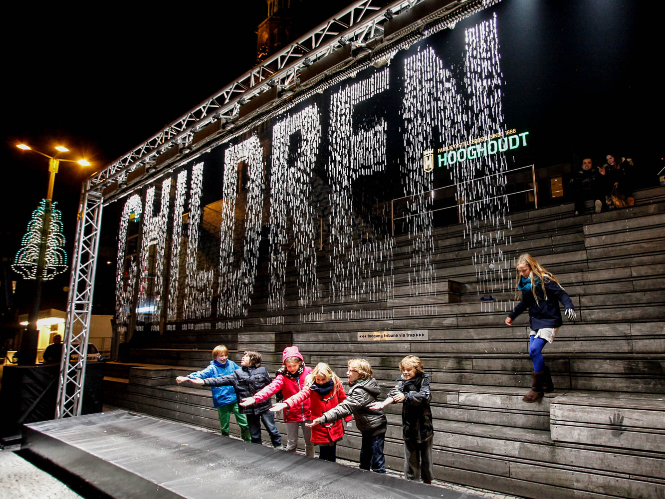 Op de Grote Markt in Groningen is donderdagavond een tijdelijk waterkunstwerk onthuld, met de naam bit.fall.