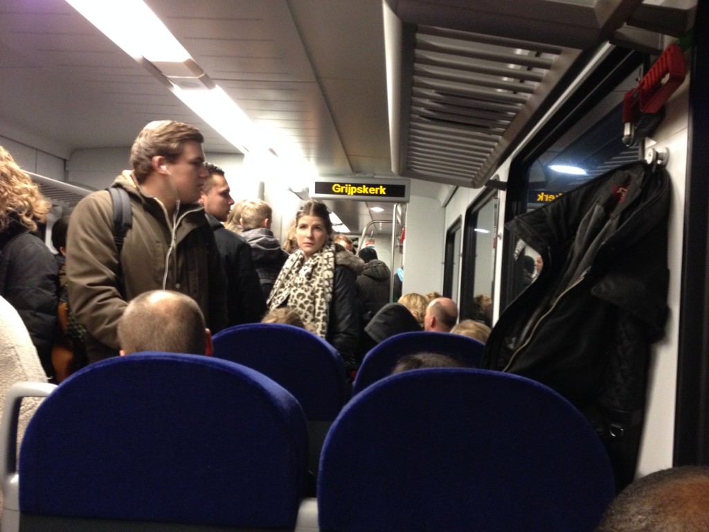 Problematisch wordt het vanaf Grijpskerk. Terwijl reizigers proberen uit te stappen, probeert een grote menigte een plek in de trein te bemachtigen. “Dames en heren”, roept de machinist via de intercom. “U zult echt door moeten lopen, anders gaat het niet passen.” Terwijl nog tientallen mensen buiten op het perron staan, klinkt het schrille geluid van het fluitje door de vroege ochtend, waarna de deuren vergrendeld worden, en de trein zich in beweging zet, na-gekeken door reizigers die achterblijven.