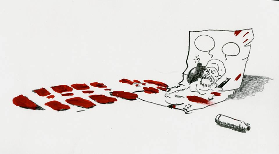 Types die schuld van de daden Boko Haram en twee Algerijnse broers bij Wilders, Charlie Hebro en Assad leggen.