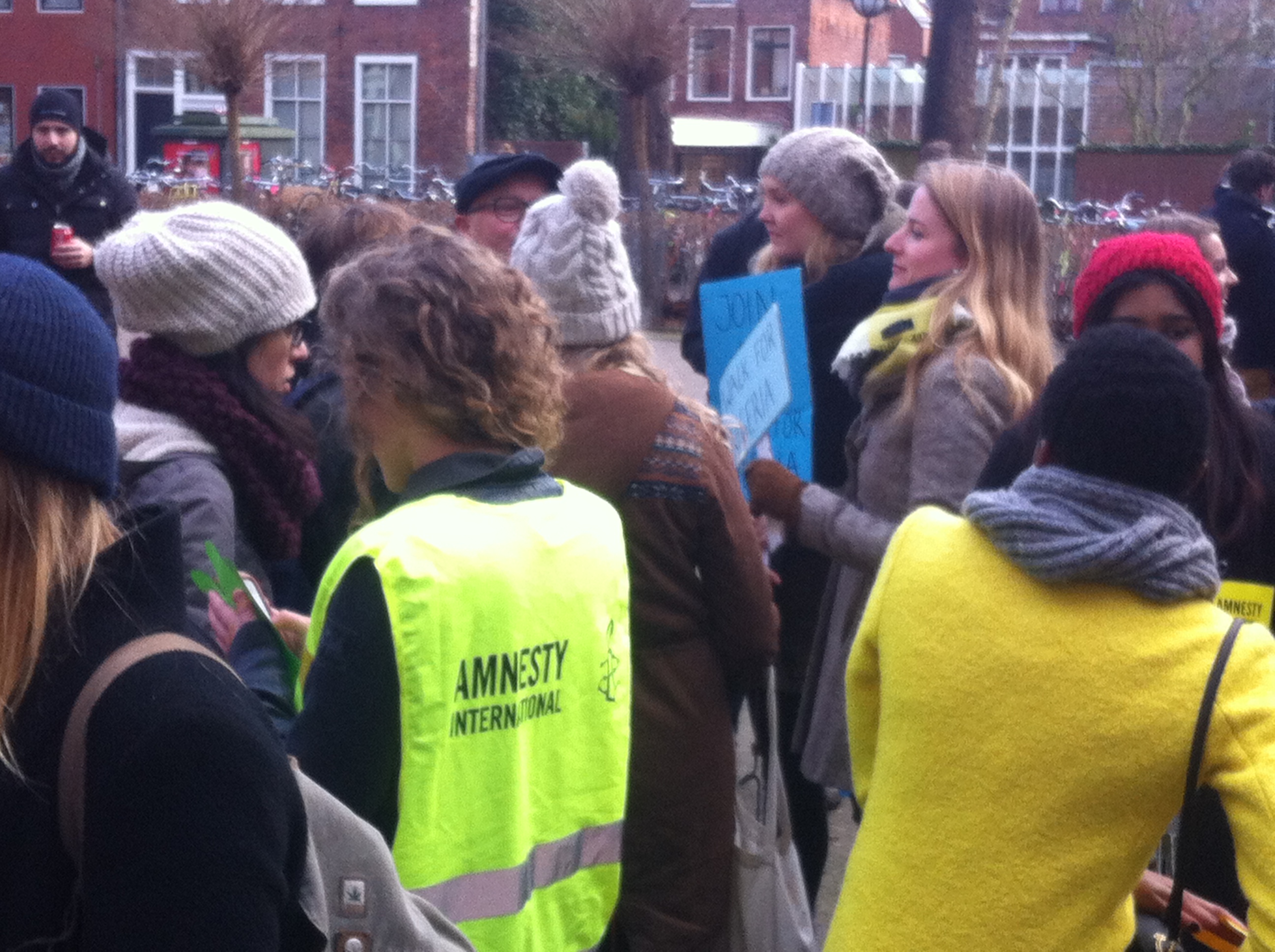 De actie was georganiseerd door de Amnesty International Studenten Groep. De demonstranten liepen vanaf het Harmoniecomplex naar de Grote Markt en weer terug.