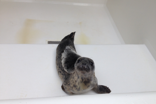 OOGIE werd verzwakt en met een wond in haar achtervin gevonden. Ze maakte een veel te tamme indruk en dat is niet goed voor zeehonden. OOGIE wordt nu verzorgd in de crèche. Ze ligt nog in quarantaine, maar over ongeveer twee weken mag ze verhuizen naar het grote bad. Haar voeding bestaat nu nog een vispapje, maar de verwachting is dat ze eind deze week haar eerste visje krijgt.