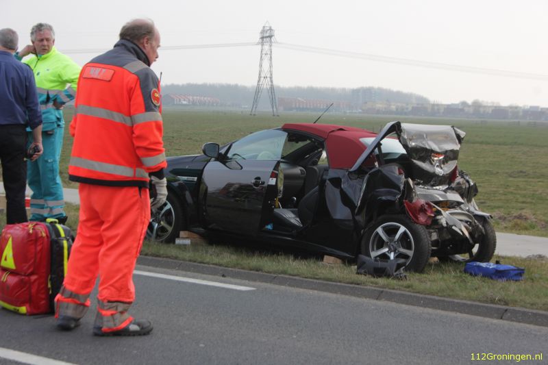De vrouw raakte bekneld en is met behulp van de hulpdiensten uit haar auto gehaald. Zij is met onbekend letsel overgebracht naar het ziekenhuis. De Friesestraatweg is enkele uren afgesloten geweest.
