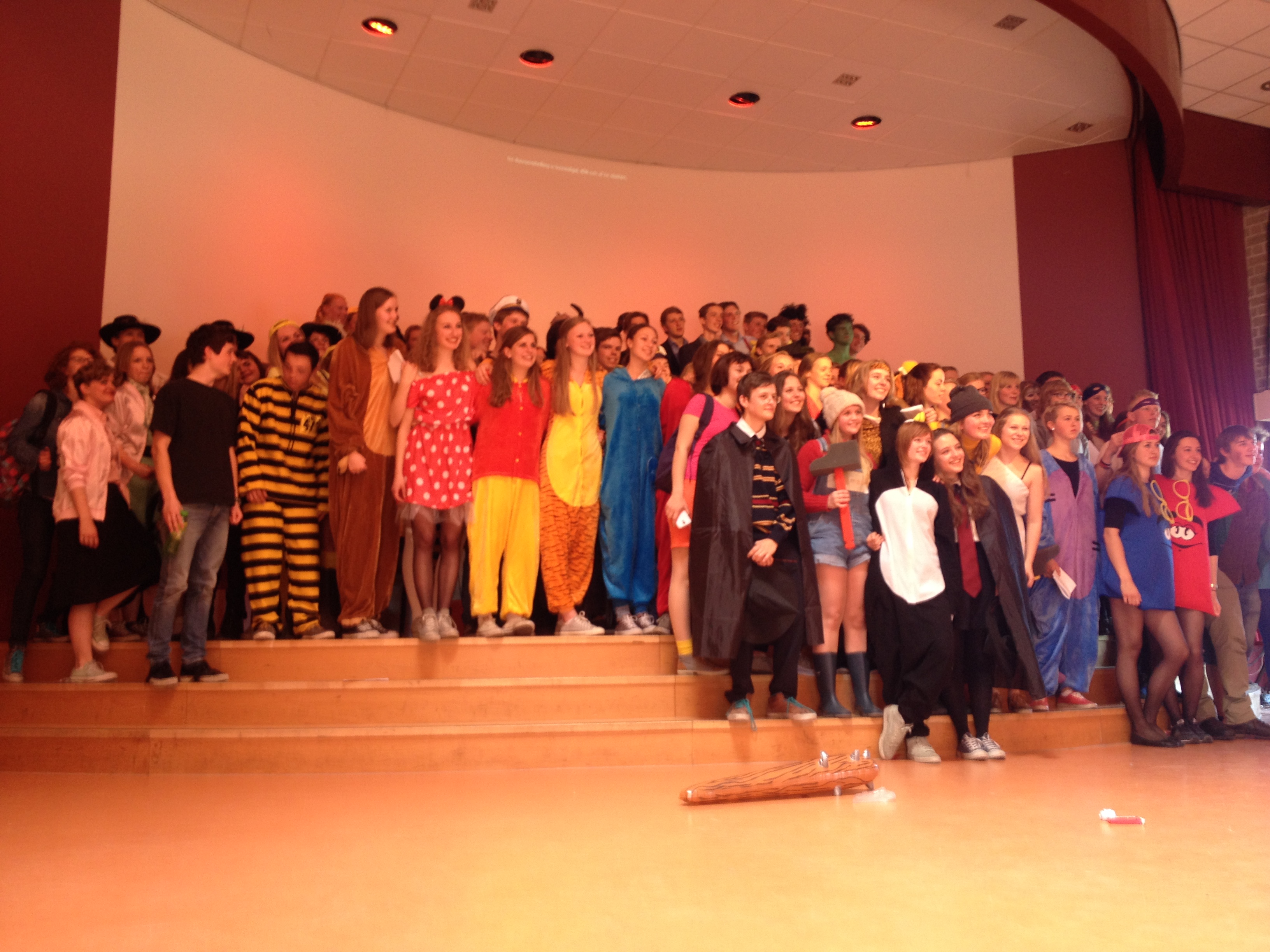 “Dit is echt ontzettend leuk”, zegt leerling Liselot Marée. “Iedereen is verkleed als een bekende of populaire televisie held. Maar ik moet eerlijk bekennen dat het toch vandaag ook wel een beetje een lach en een traan is. Je neemt afscheid van een school waar ik het de afgelopen zes jaar ontzettend naar mijn zin heb gehad, en wat ik dus echt heel erg ga missen.”