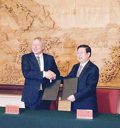 Foto: de burgemeesters Den Oudsten van Groningen en Huang Xingguo van Tianjin.