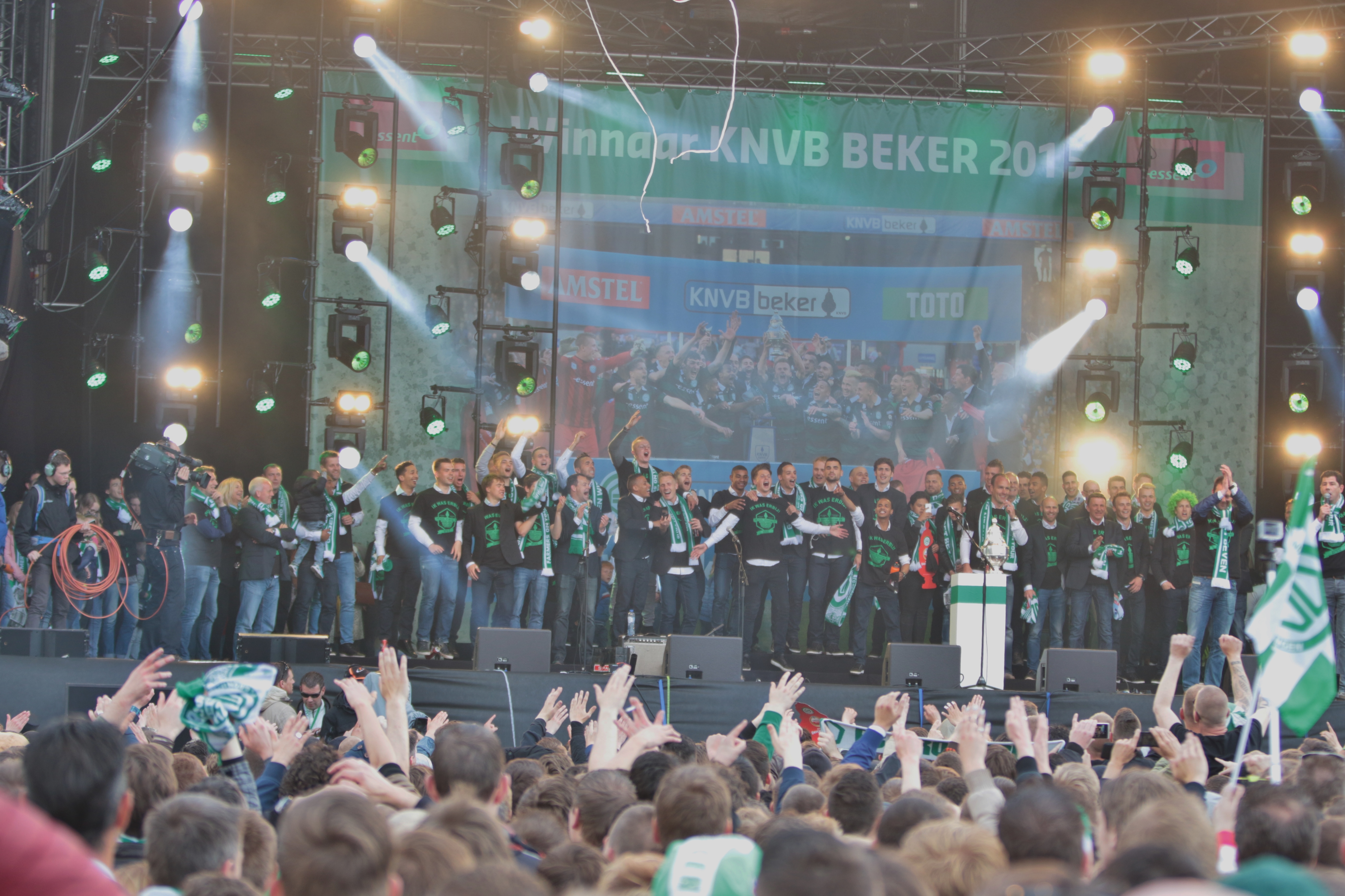 Ongeveer 30 duizend mensen maakten de huldiging mee. Daarvoor maakte FC Groningen een rijtoer door de stad die ook veel mensen op de been bracht.