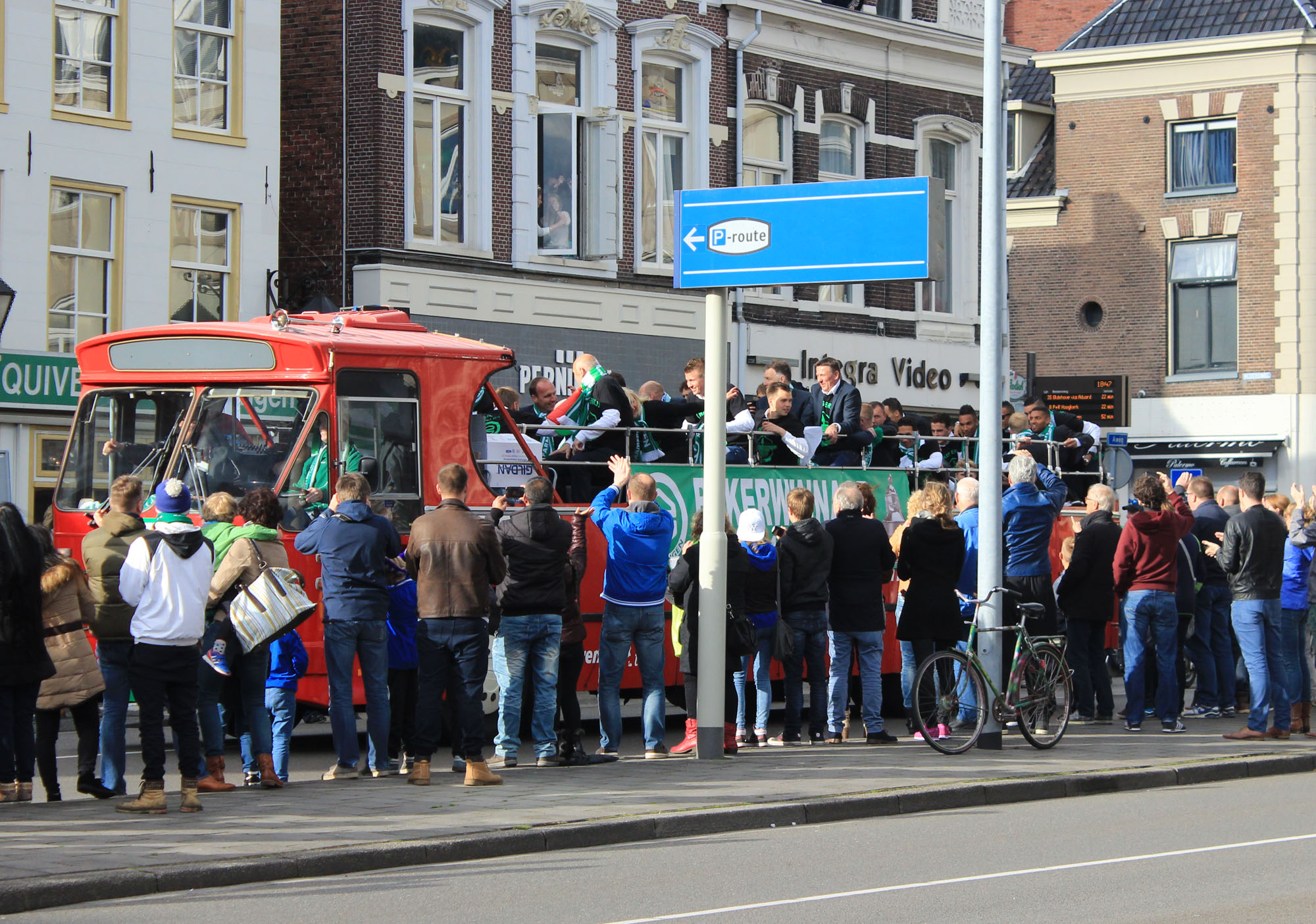 Onderweg werden de bekerwinnaars toegejuicht door het publiek dat met grote getale langs de route stond.