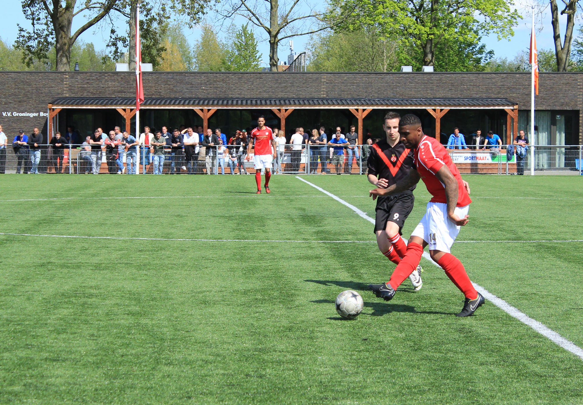 Tweede klasser Groninger Boys speelt nacompetitie voor promotie naar de eerste klasse. Zondagmiddag werd stadgenoot GRC Groningen, dat zich eerder al van die nacompetitie verzekerde, met 4-2 verslagen.
