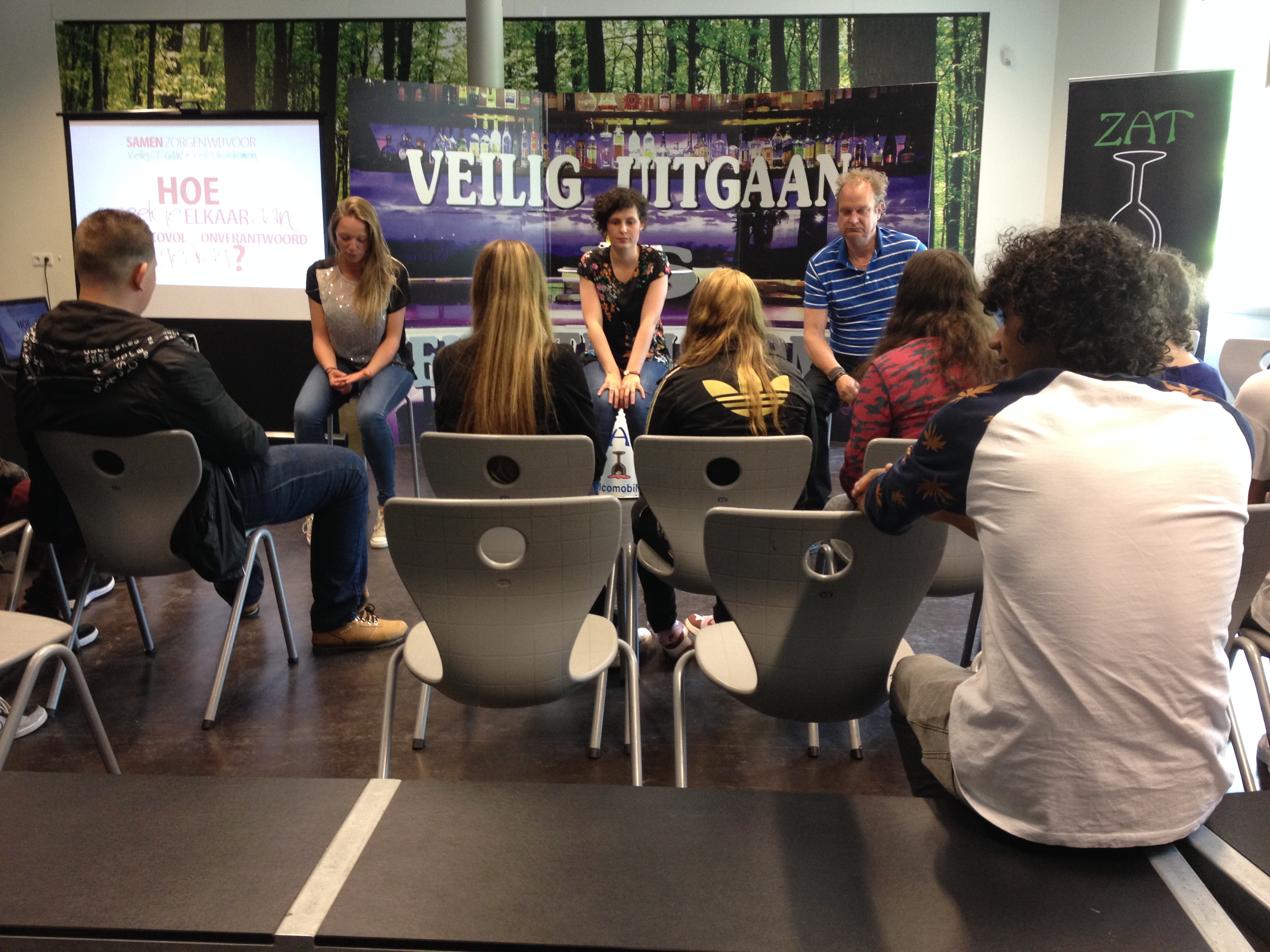 De stem hoort bij één van de theaterspelers die dinsdagmiddag het project ‘Veilig Uitgaan’ aftrapte. “Het doel van dit project is dat we de leerlingen bewust maken van de mogelijke risico’s die er bestaan tijdens het uitgaan”, vertelt Sylvana Oldenburger van de school. “Daarbij leren we de leerlingen ook hoe ze dit kunnen voorkomen.” Het project bestaat uit het volgen van talloze workshops waarbij de leerlingen ook daadwerkelijk kennis maken met het uitgaansgebied in de stad.