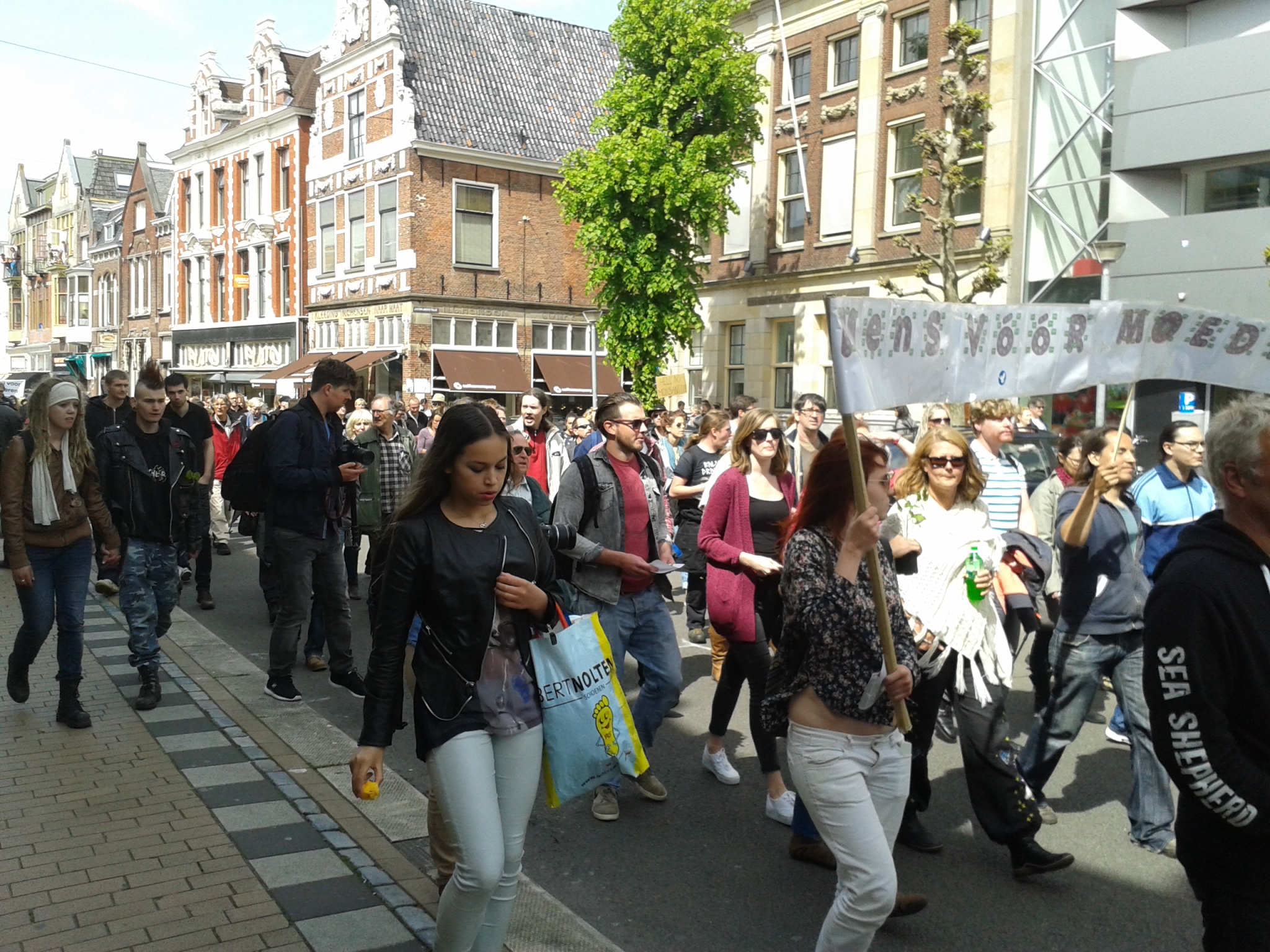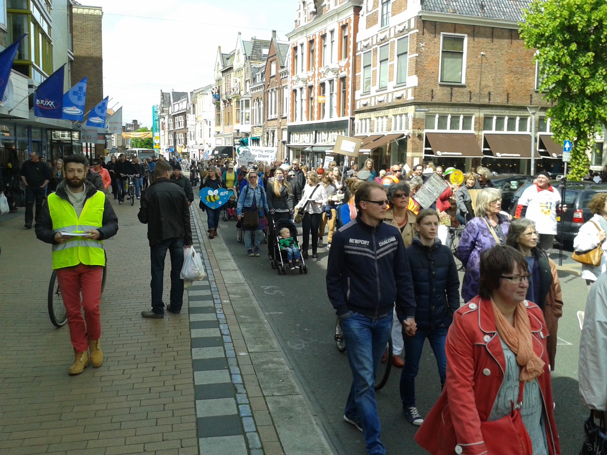 Een demonstratie tegen het bedrijf Monsanto en het vrijhandelsverdag (TTIP) tussen Europa en Amerika trok zaterdag honderden mensen naar de binnenstad. De mars begon in het Noorderplantsoen en via de Ebbingestraat ging het richting de Grote Markt.