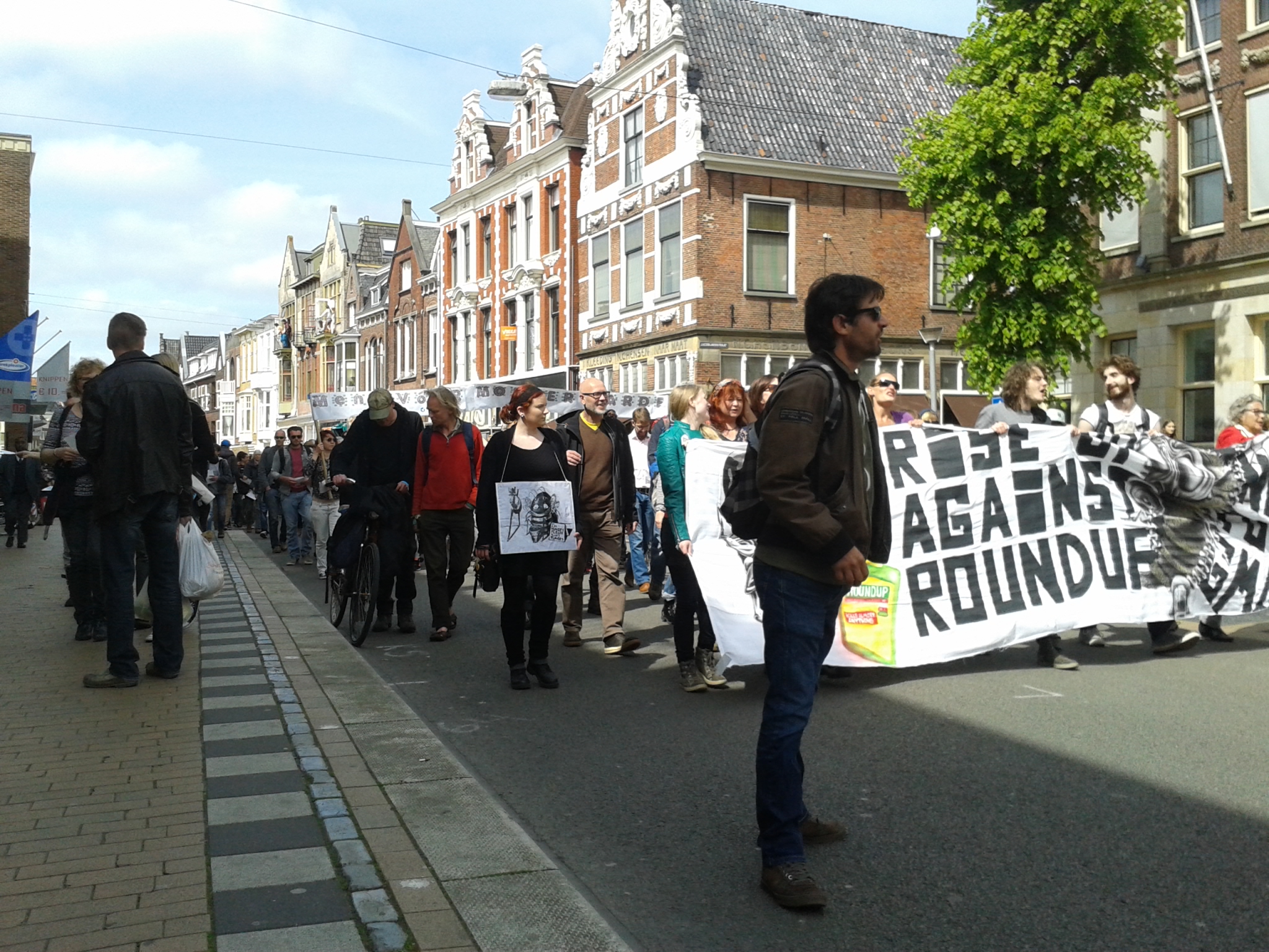 Waarom combineren ze altijd demonstraties met de meest onmogelijke demonstranten. Ben tegen TTIP, maar dat andere bedrijf kan mij gestolen worden. Schijnbaar komen er anders niet genoeg mensen op af. Verbaasd me dat ze niet meteen tegen Zwarte Piet en voor de opvang van alle bootvluchtelingen demonstreren. Demonstratie georganiseerd door milieudefensie, dus mij zie je niet meelopen met die Volkert van de G'.