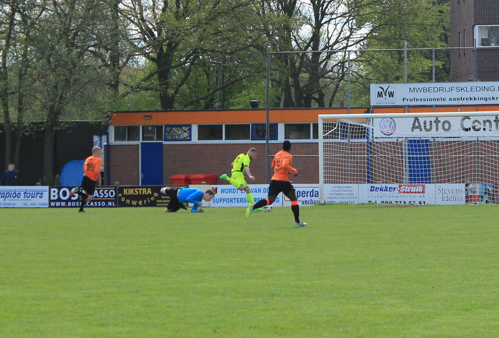 Wesley Walstra opende de score voor PKC. Kort daarna maakte Jaap Jacobs gelijk. Jordi Striedelmeijer zette PKC weer op voorsprong en Jacobs zorgde opnieuw voor de gelijkmaker. Jacobs kreeg daarna rood voor een harde overtreding.