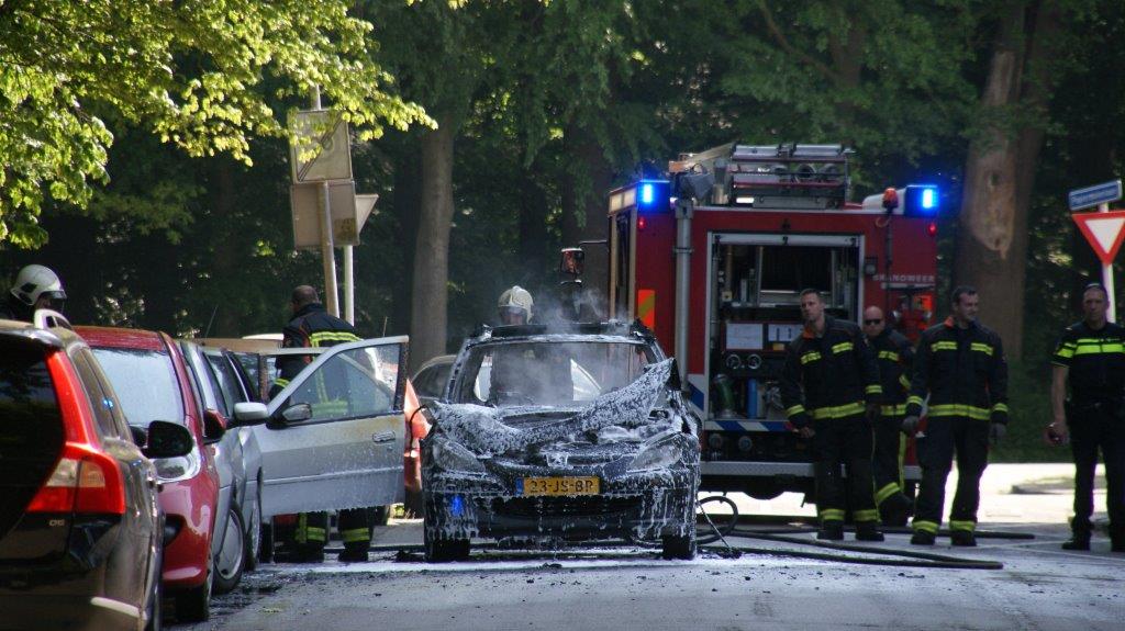 De brandweer was het vuur snel meester, maar de auto moet als verloren worden beschouwd..