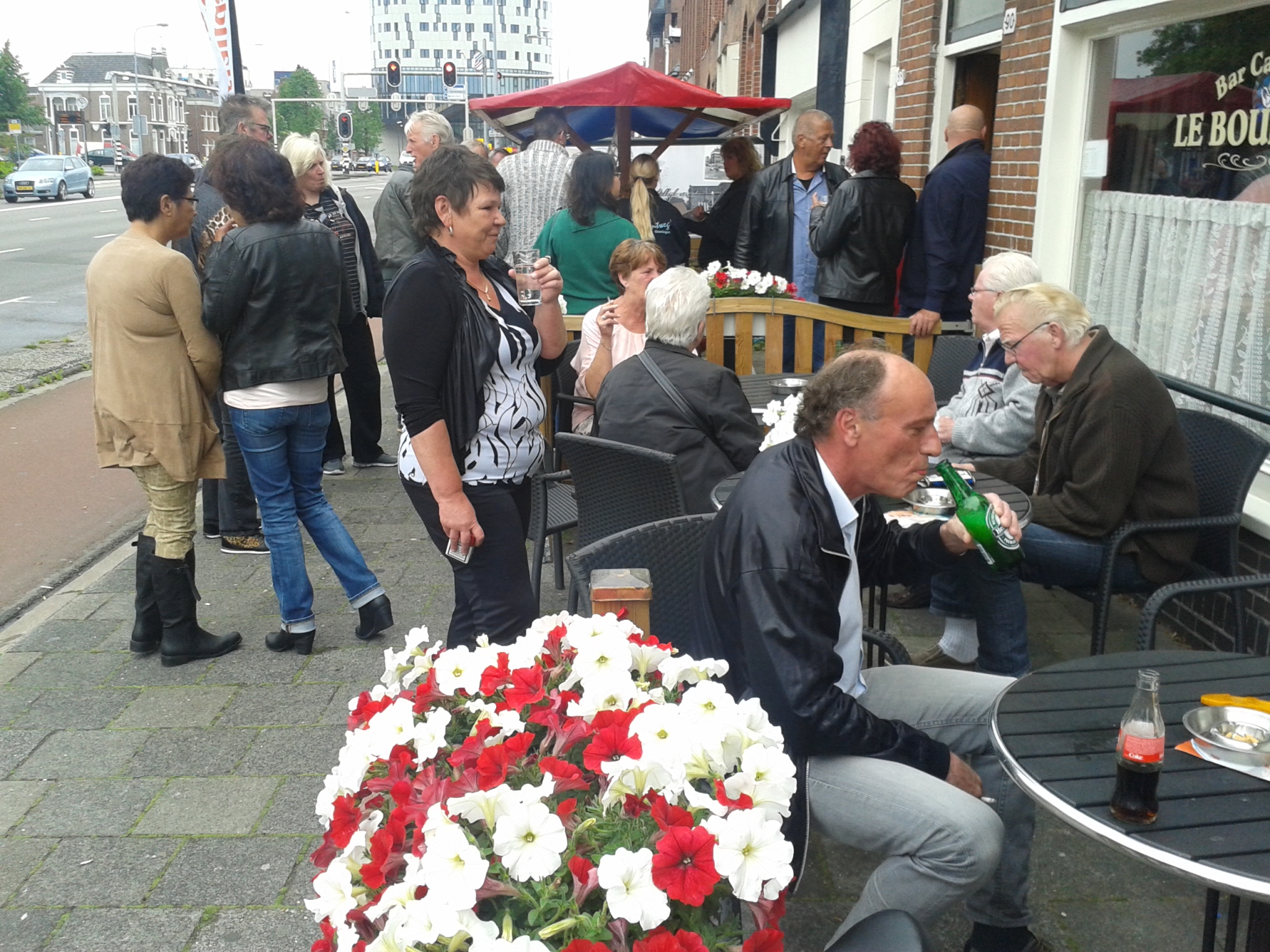 De haringsparty, in en om een café aan het Damsterdiep, trok zondagmiddag ruim honderd bezoekers. Iedereen kon genieten van de nieuwe haring die sinds deze week te verkrijgen is.