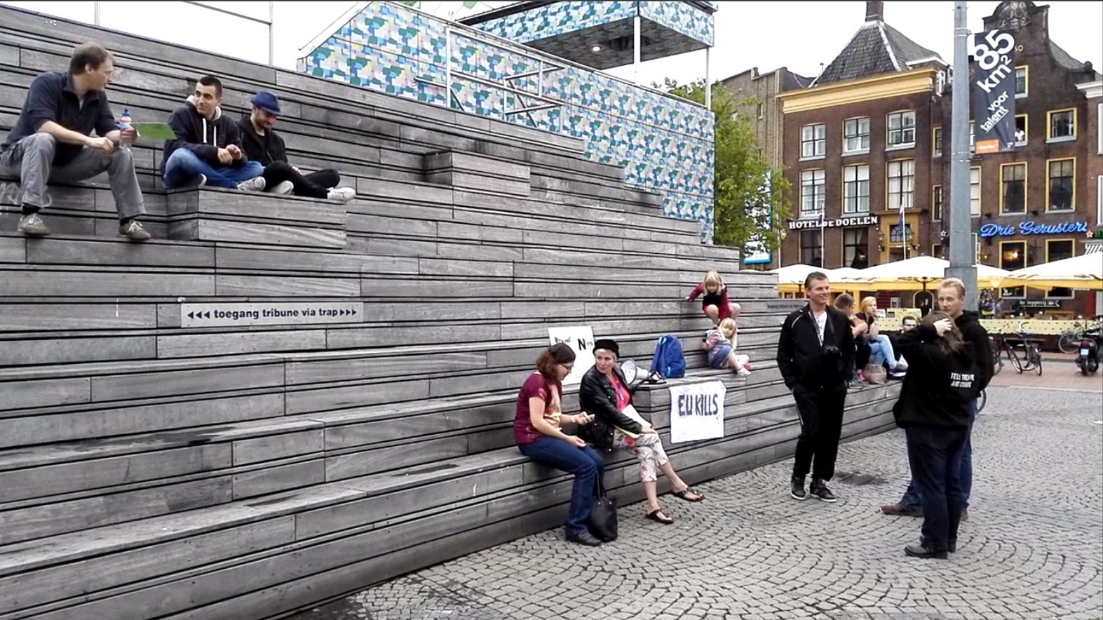 Een demonstratie op de Grote Markt woensdagavond, uit solidariteit met de bevolking van Griekenland, trok nauwelijks belangstellenden. Nog geen tien mensen kwamen opdagen.