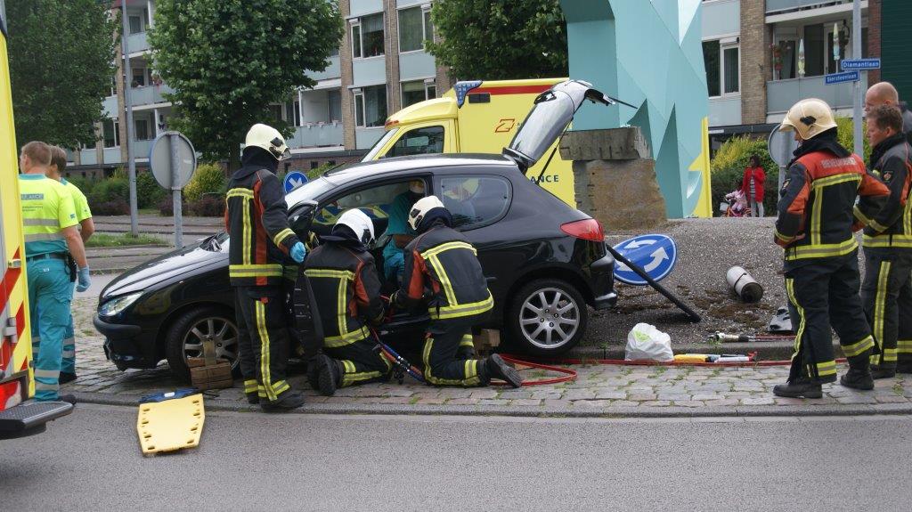 De vrouw reed met haar wagen in de richting van de Diamantlaan toen zij bij de rotonde op de Siersteenlaan een auto met daarin een gezin van achteren ramde. Die auto draaide hierdoor een aantal keren om zijn as heen en kwam midden op de rotonde tot stilstand.