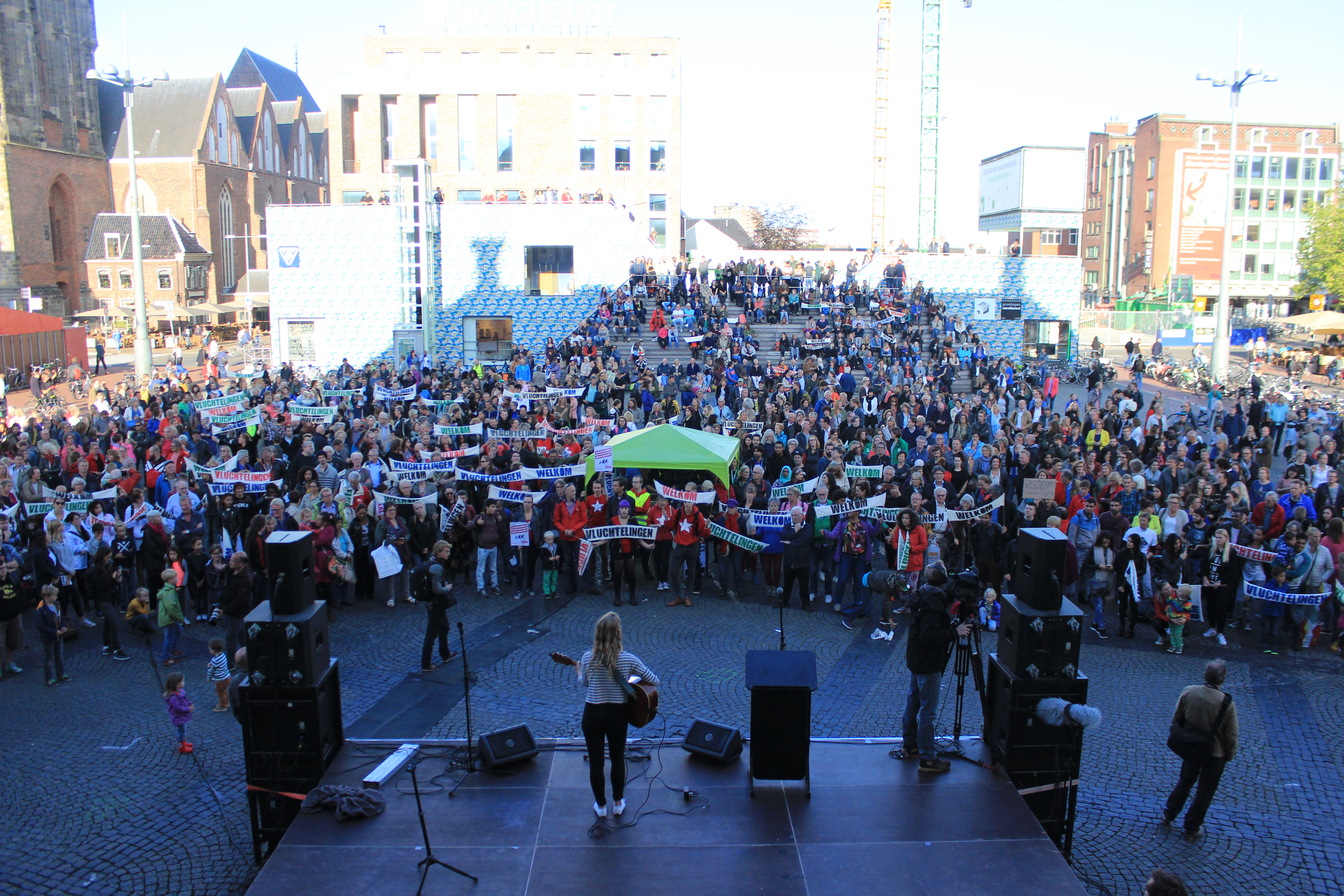 Op de grote markt was het duidelijk maandagmiddag: Vluchtelingen, jullie zijn welkom!