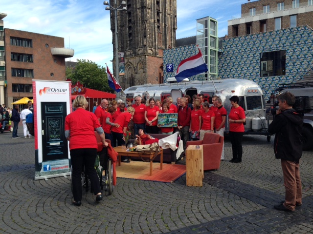 Een huiskamer op de Grote Markt, dat zie je niet elke dag, Humanitas vroeg op deze manier aandacht voor het Opstaphuis.