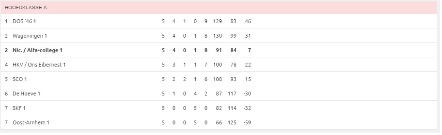 Door de winst staat Nic. nu op een gedeelde tweede plaats in de Hoofdklasse A. Volgende week wacht een pittige uit-wedstrijd tegen Wageningen.