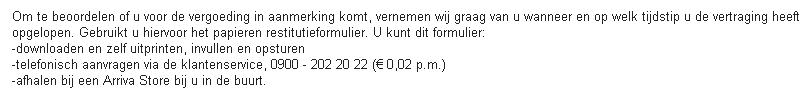 Al bleek die optie iets te rooskleurig gepresenteerd, zo bleek op 22 juli. Door een grote seinstoring kunnen er in de avond van 22 juli geen treinen rijden op de trajecten boven de lijn Zwolle. Het gevolg is dat reizigers uren vertraging oplopen. Als de persoon- en reisgegevens vervolgens via de app ingevuld worden, om het geld terug te krijgen, volgt er na een aantal weken een mail van Arriva, waarin staat dat je toch echt een papieren restitutieformulier moet uitprinten of moet ophalen bij een Arriva-Store, en deze per briefpost naar Arriva moet sturen.