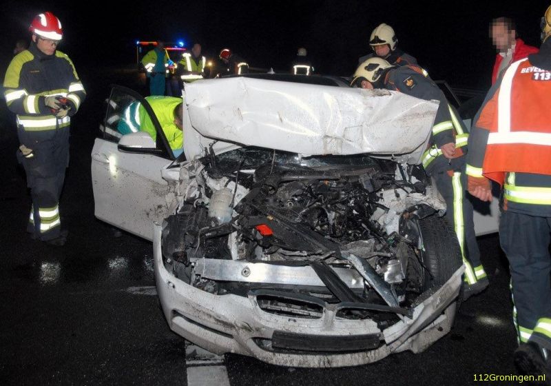 De 20-jarige Groninger botste met zijn BMW achterop een lege bietenwagen. Even verderop reden nog een paar auto’s op elkaar, vermoedelijk omdat de chauffeurs schrokken van de brokstukken op de weg.