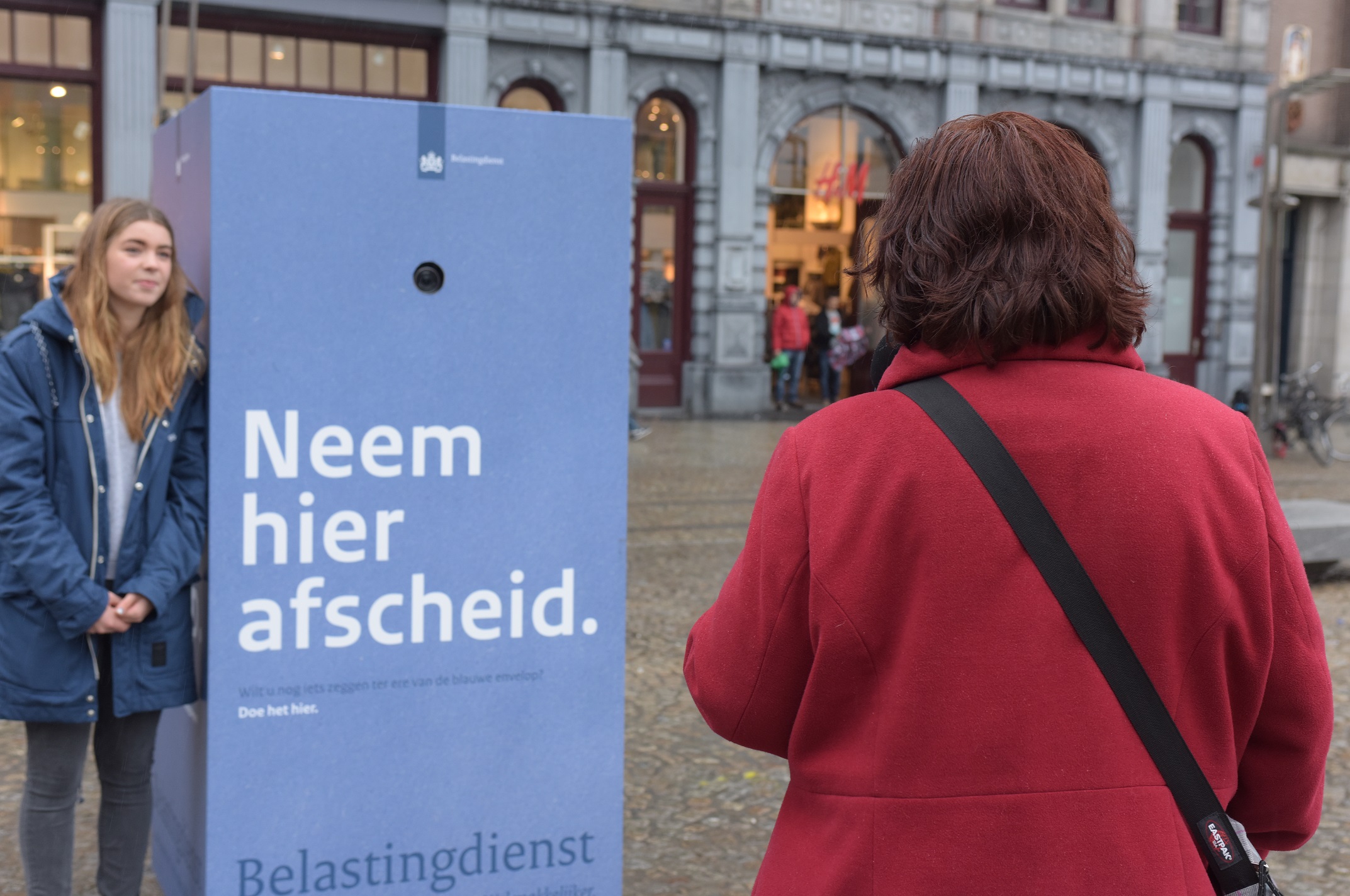Op de Grote Markt staat zondag tussen 10.00 en 17.00 uur een videobox. Daar kunnen voorbijgangers hun persoonlijke boodschap en herinnring aan de blauwe belastingenvelop op video achterlaten.