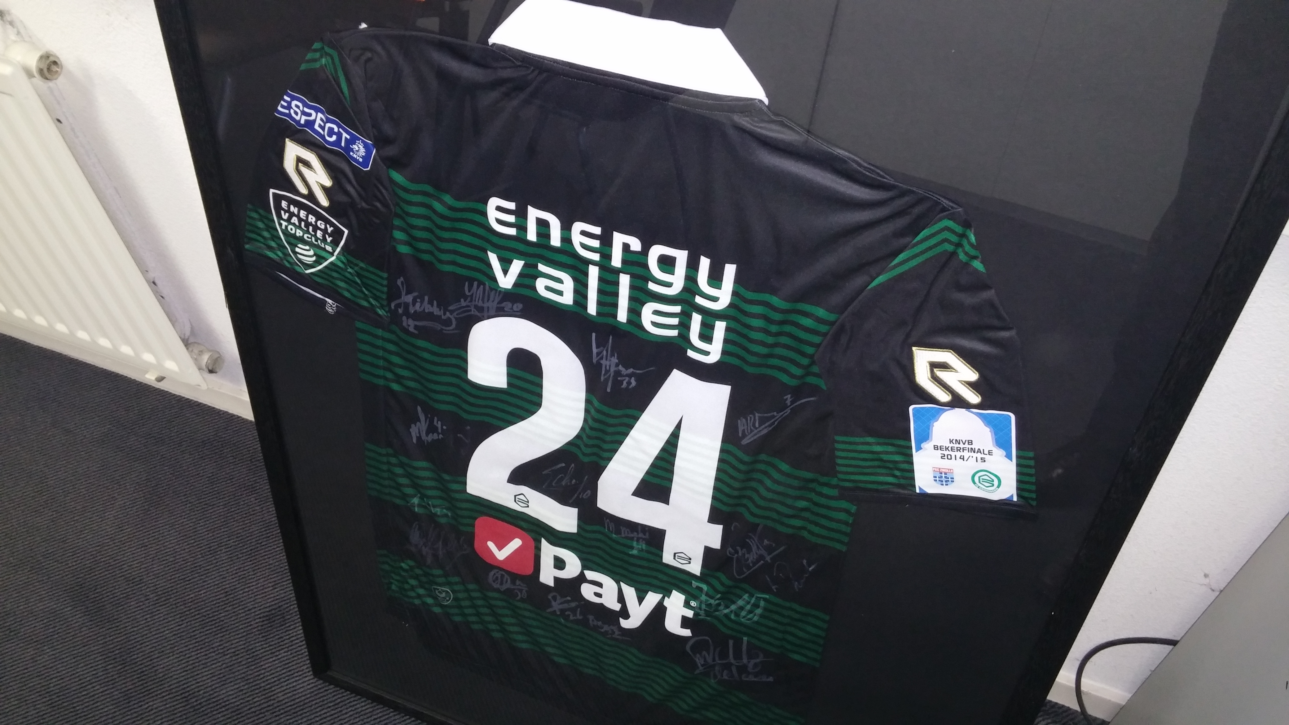 Een gesigneerd shirt van FC Groningen, dat tijdens de vorig seizoen gewonnen bekerfinale door Tom Hiariej gedragen werd, heeft 751 euro opgeleverd.