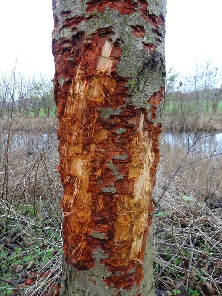 Enkele dagen geleden zijn dertien elzen zwaar beschadigd aangetroffen in het Edonbos. De bomen zijn beschadigd door een hond.
