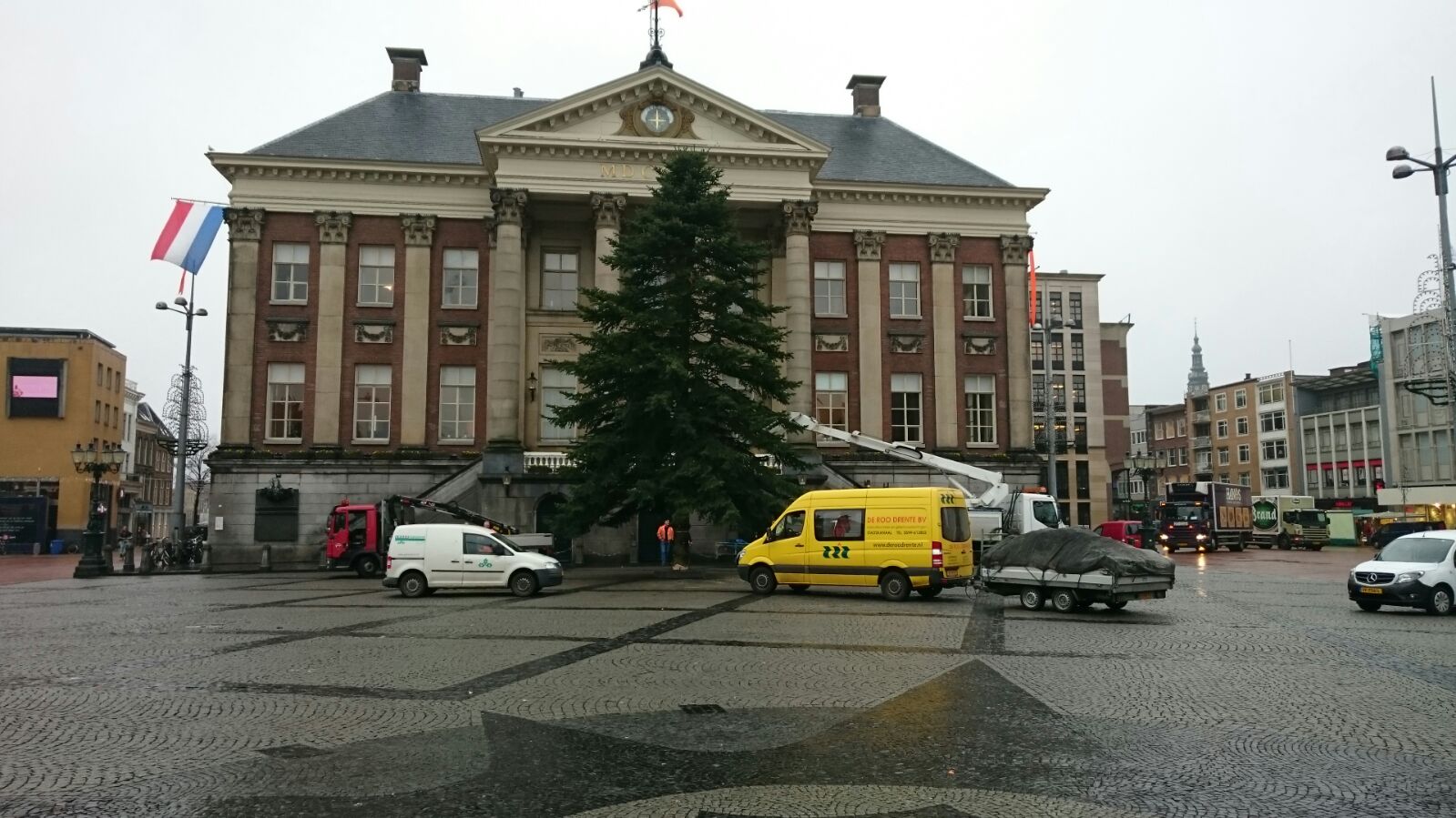 Wethouder Joost van Keulen deed donderdagavond om zeven uur de 10.000 lichtjes in de kerstboom op de Grote Markt aan.