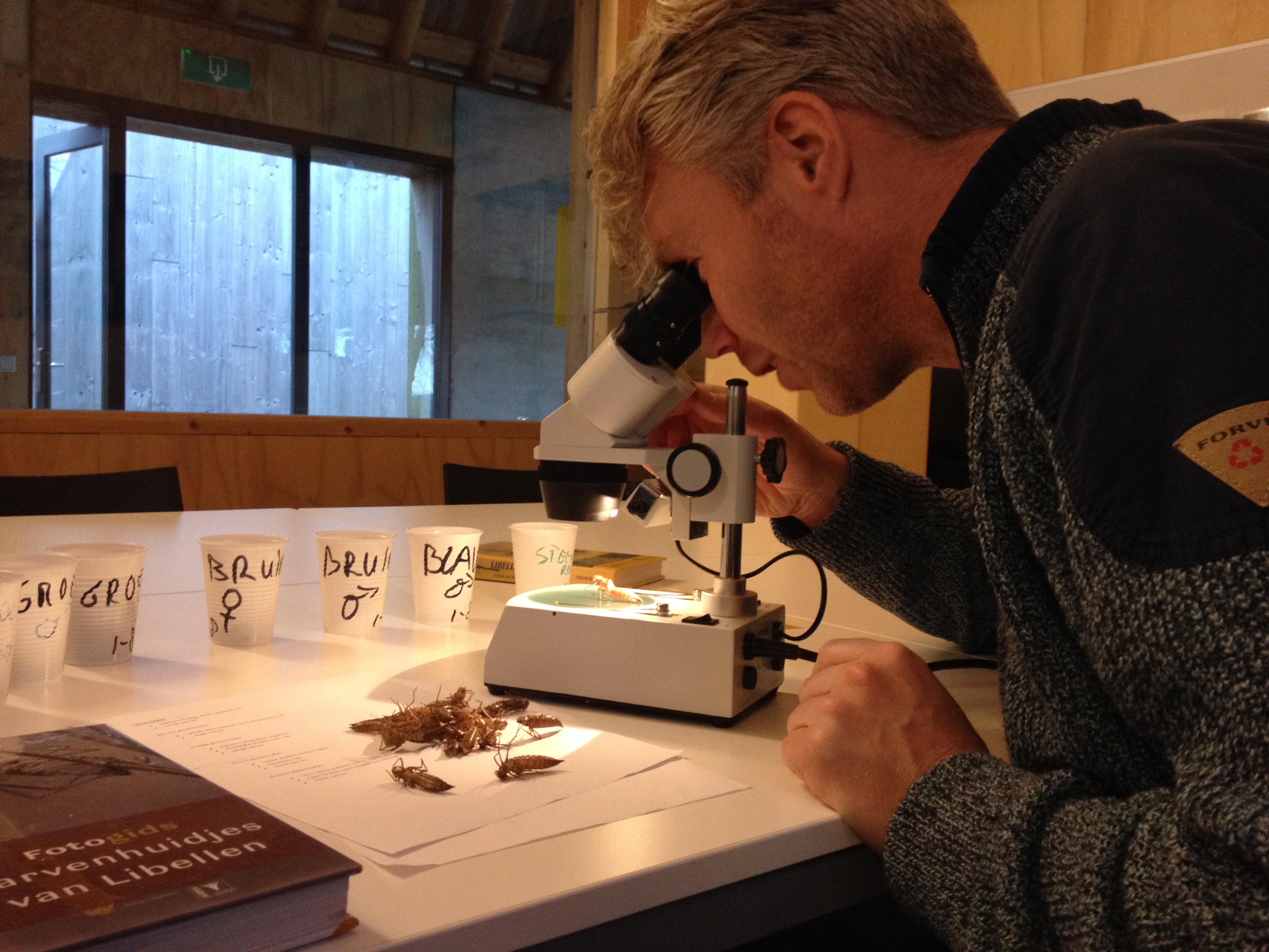 Eén van die onderdelen is het determineren van de libellehuidjes. “De libelle leeft zo’n twee jaar onder water. Daarna komt het insect boven water, verliest zijn huid, en gaat op zoek naar een paringspartner. Juist dit stuk huid wat ze achter laten kan ons veel vertellen over welke soorten er leven, en wat de achtergrond ervan is.”