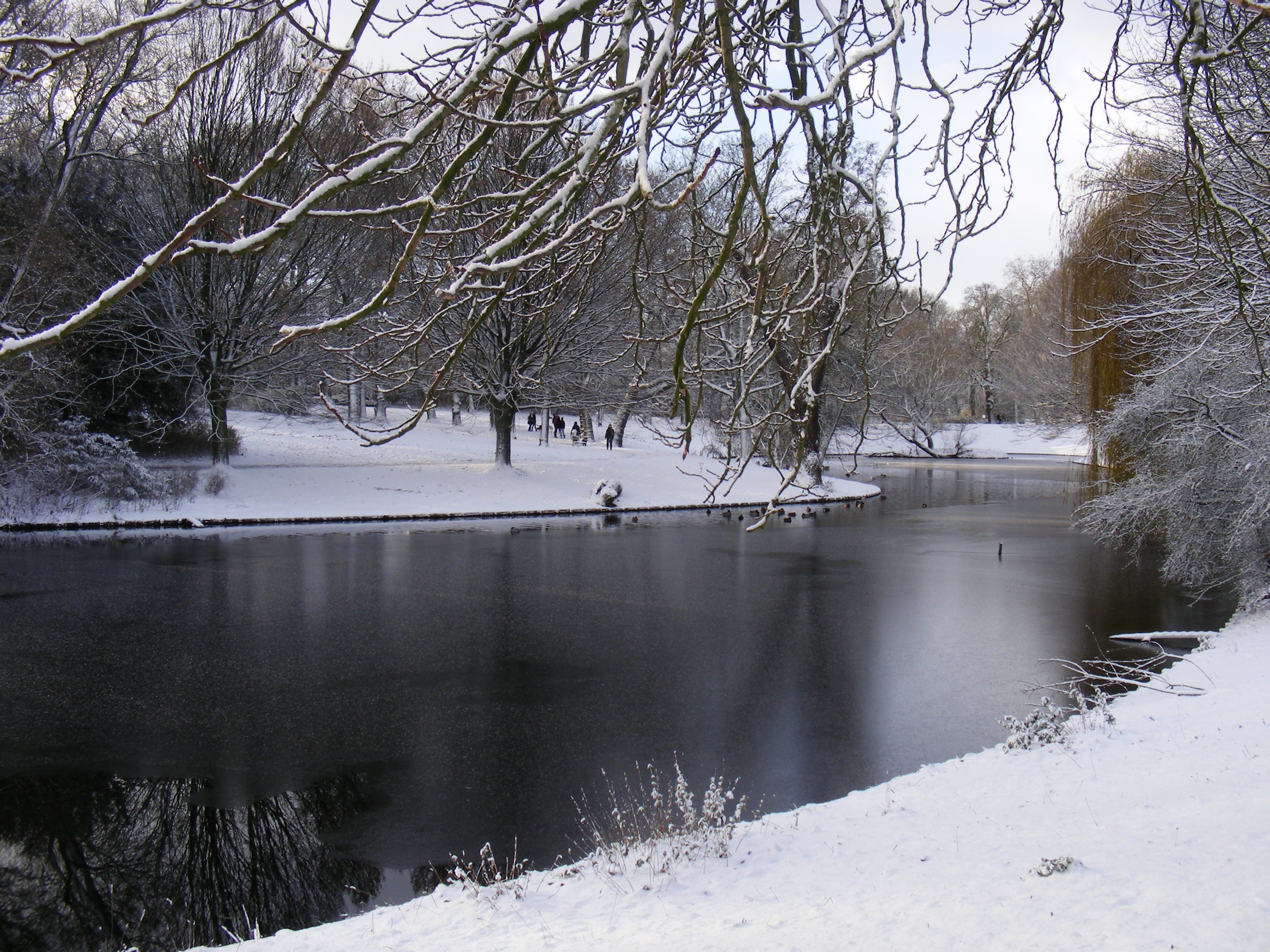 Het Noorderplantsoen was woensdag ook nagenoeg uitgestorven. Maar omdat de scholen vandaag ook hun deuren dicht hielden trokken veel kinderen er met hun slee of schaatsen op uit.