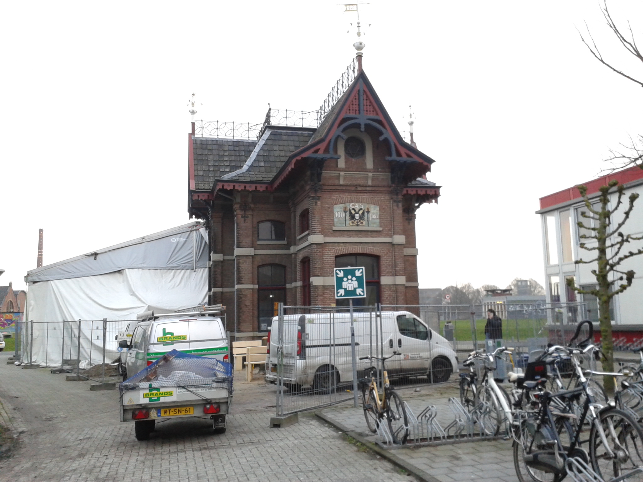 Bij Proeflokaal ’t Kantoor, de nieuwe brasserie op het Ebbingekwartier staat al geruime tijd een mysterieuze tent. Aan het voormalige regulateurshuis van de vroegere gemeentelijke gasfabriek wordt in de tent druk gebouwd aan een soort kiosk.