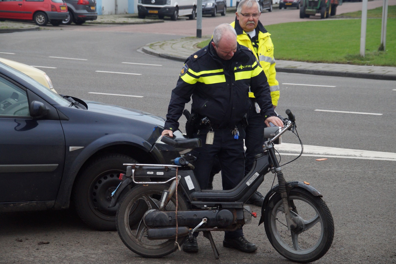 De bestuurder van een scooter is vrijdagmiddag gewond geraakt bij een aanrijding aan de Kotkastraat, een zijstraat van de Bornholmstraat.