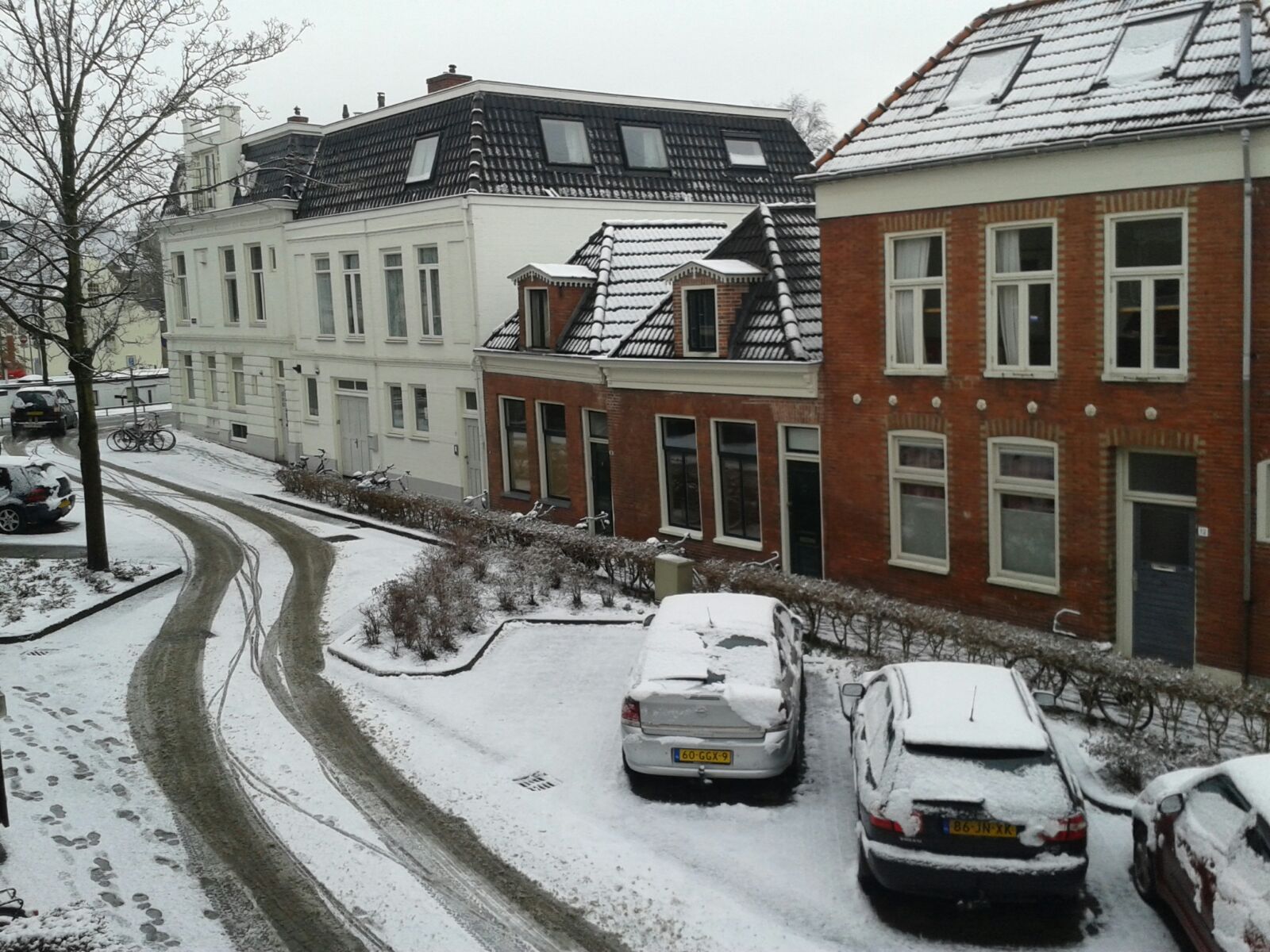 De buien die zaterdagochtend over Groningen trokken, hebben de stad onder een dun laagje sneeuw van twee á drie centimeter bedekt. Vanwege de gladheid gebeurden er in het Noorden zo’n tien ongelukken.